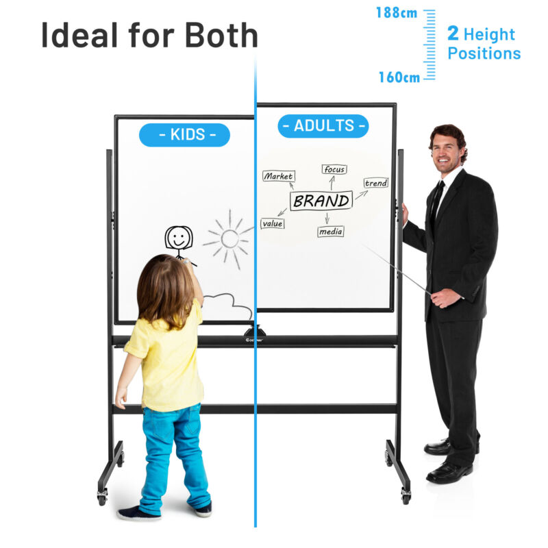 90 x 120CM Double Side Mobile Magnetic Whiteboard Adjustable Dry Erase Board