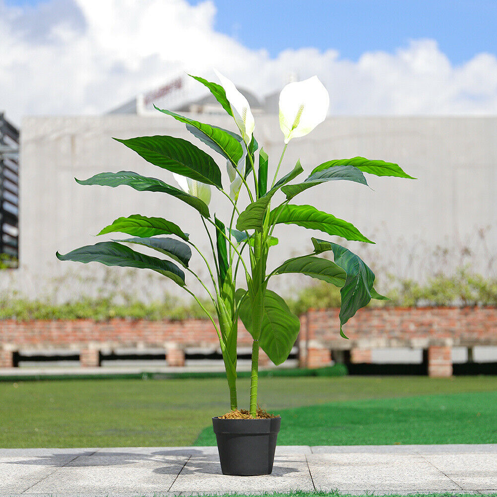90cm Artificial Peace Lily Potted Tree Fake Flower Outdoor Garden Plant Home UK