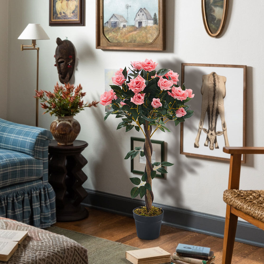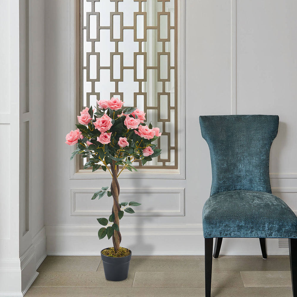 90cm Artificial Rose Tree Potted Indoor Outdoor Wedding Pink Flower Garden Decor