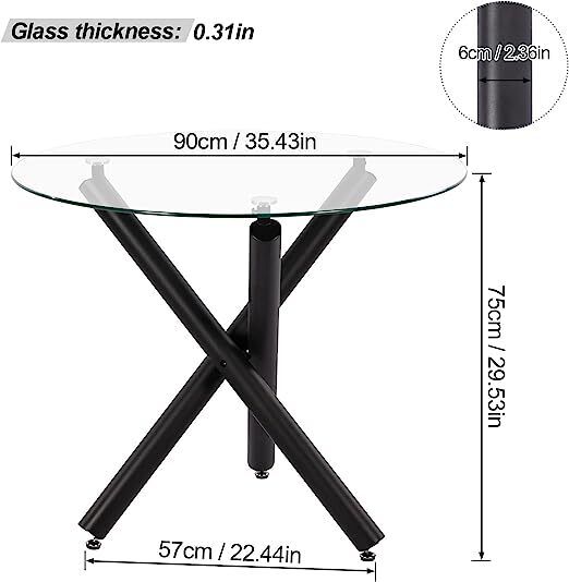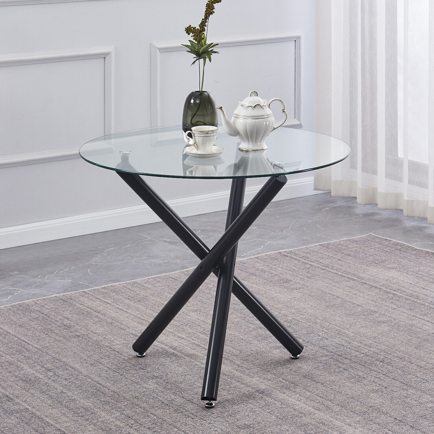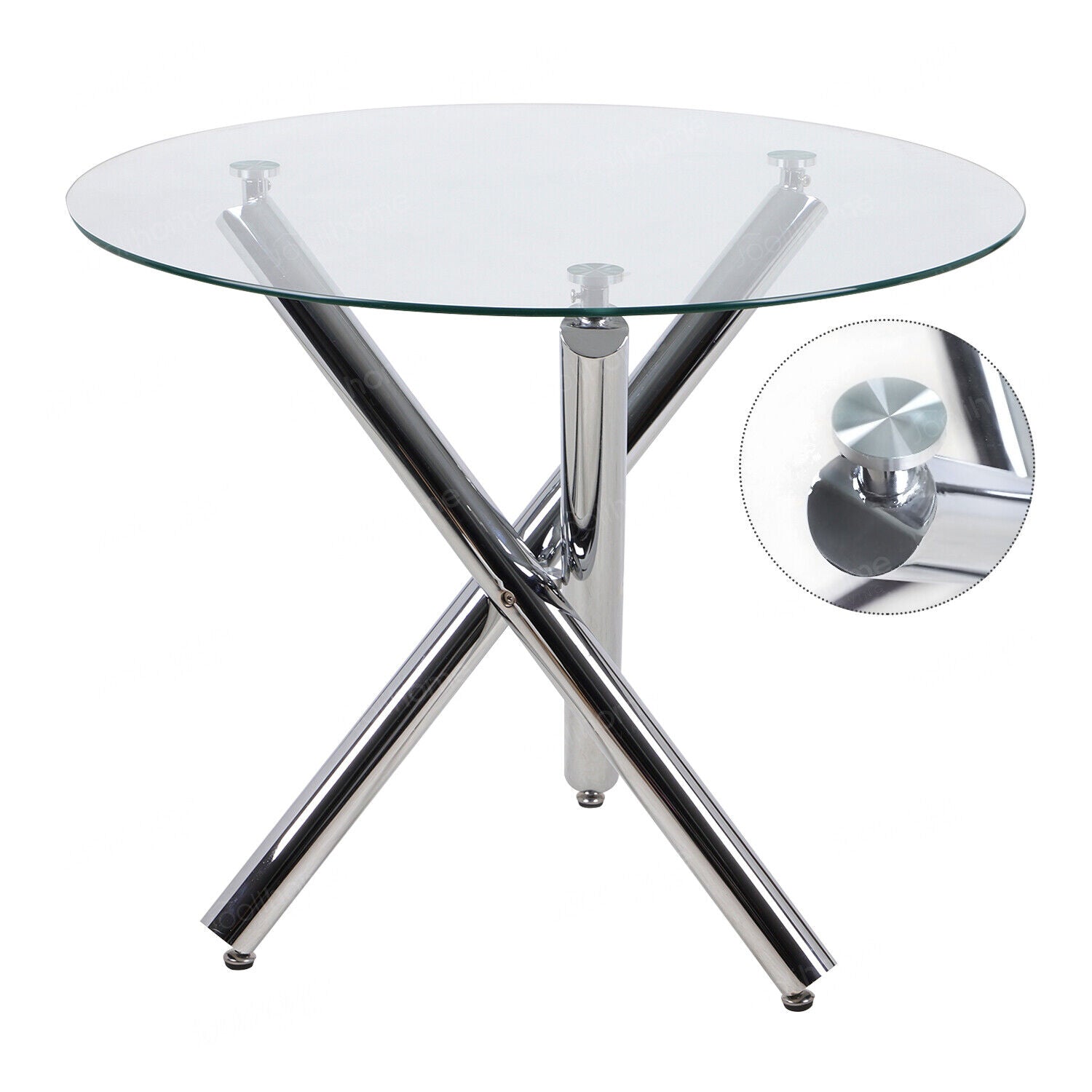 90cm Clear Tempered Glass Dining Table Home Furniture Cafe Lounge Recept Table