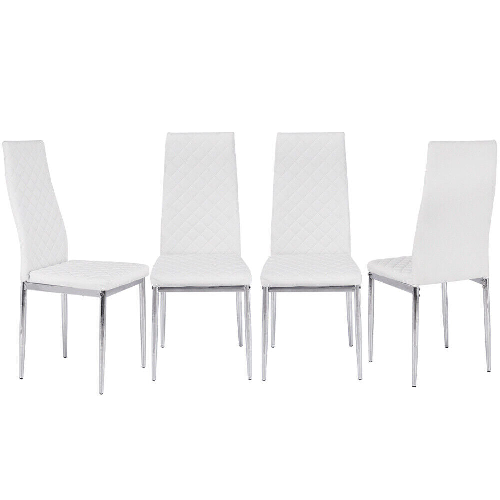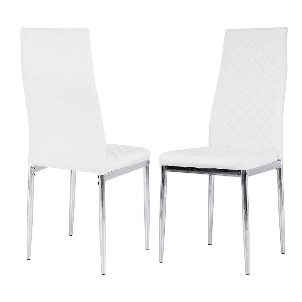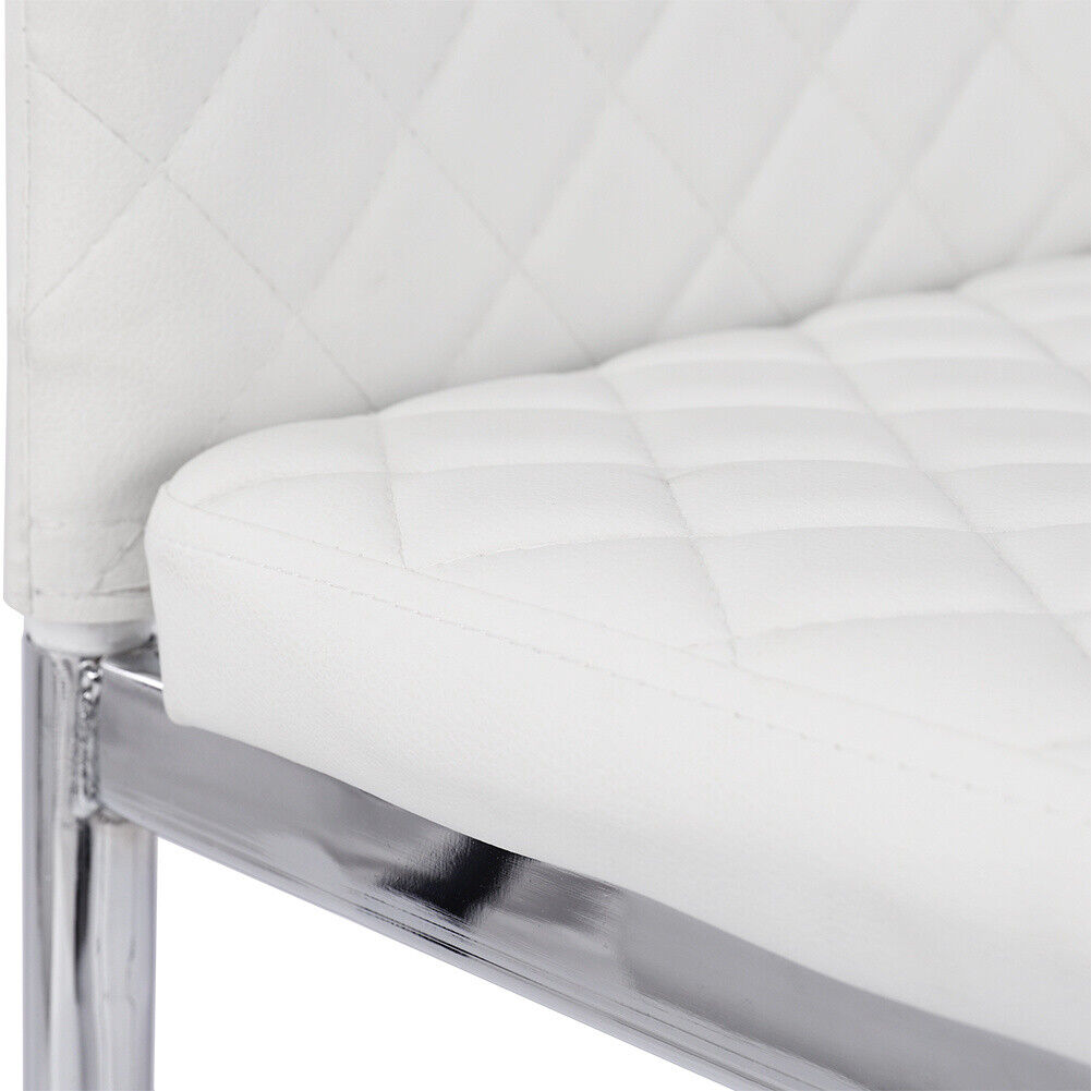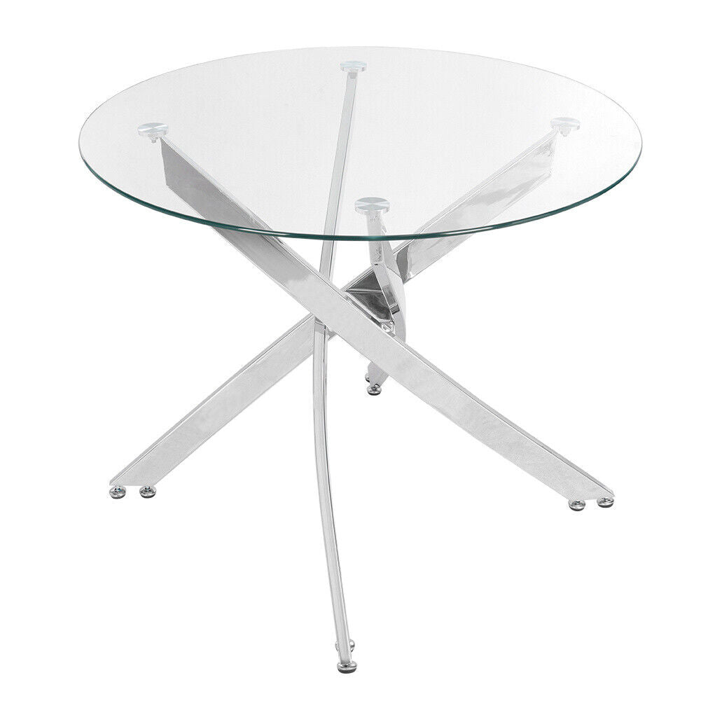 90cm Cross Round Glass Dining Table and 2/4 PU Leather Padded White Chairs Set