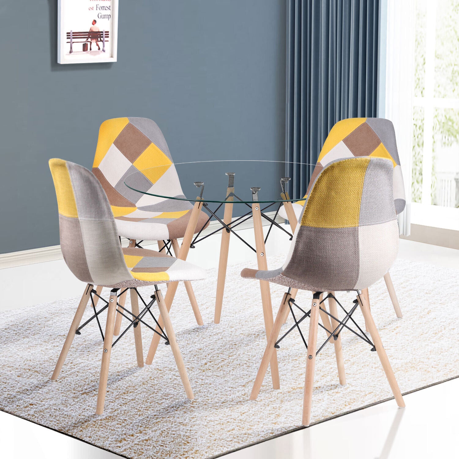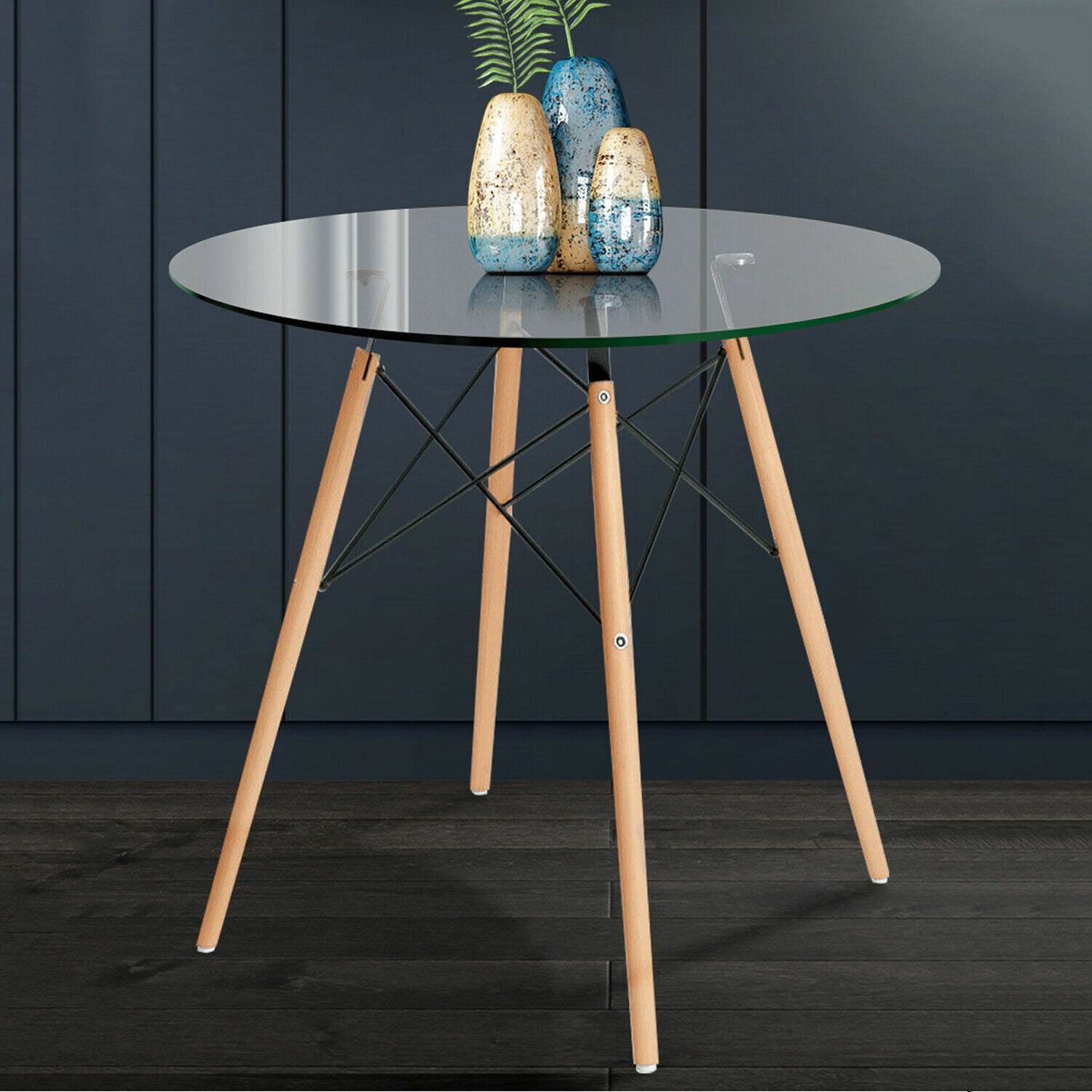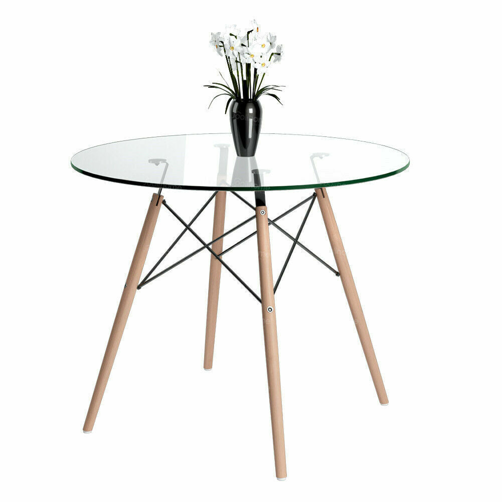 90cm Glass Dining Table Wood Legs Kitchen Lounge Coffee Working Restaurant Table