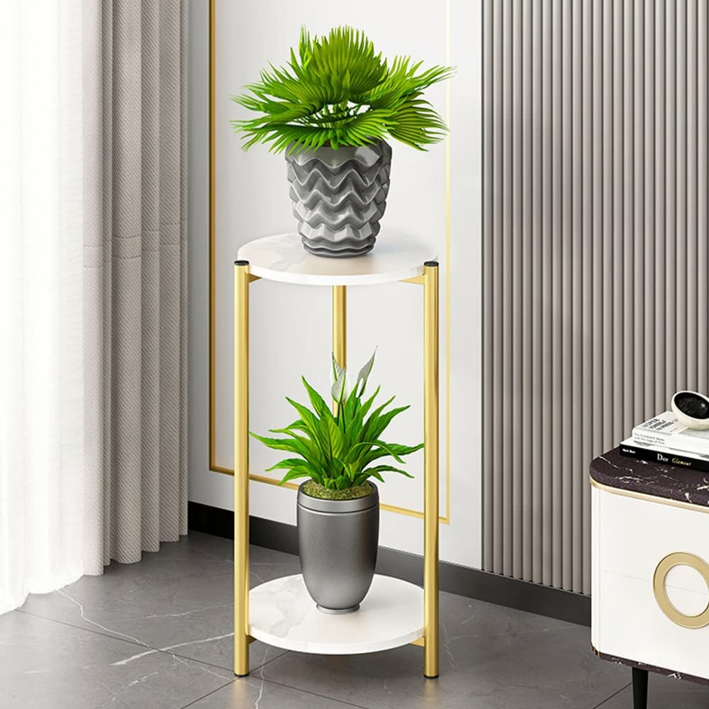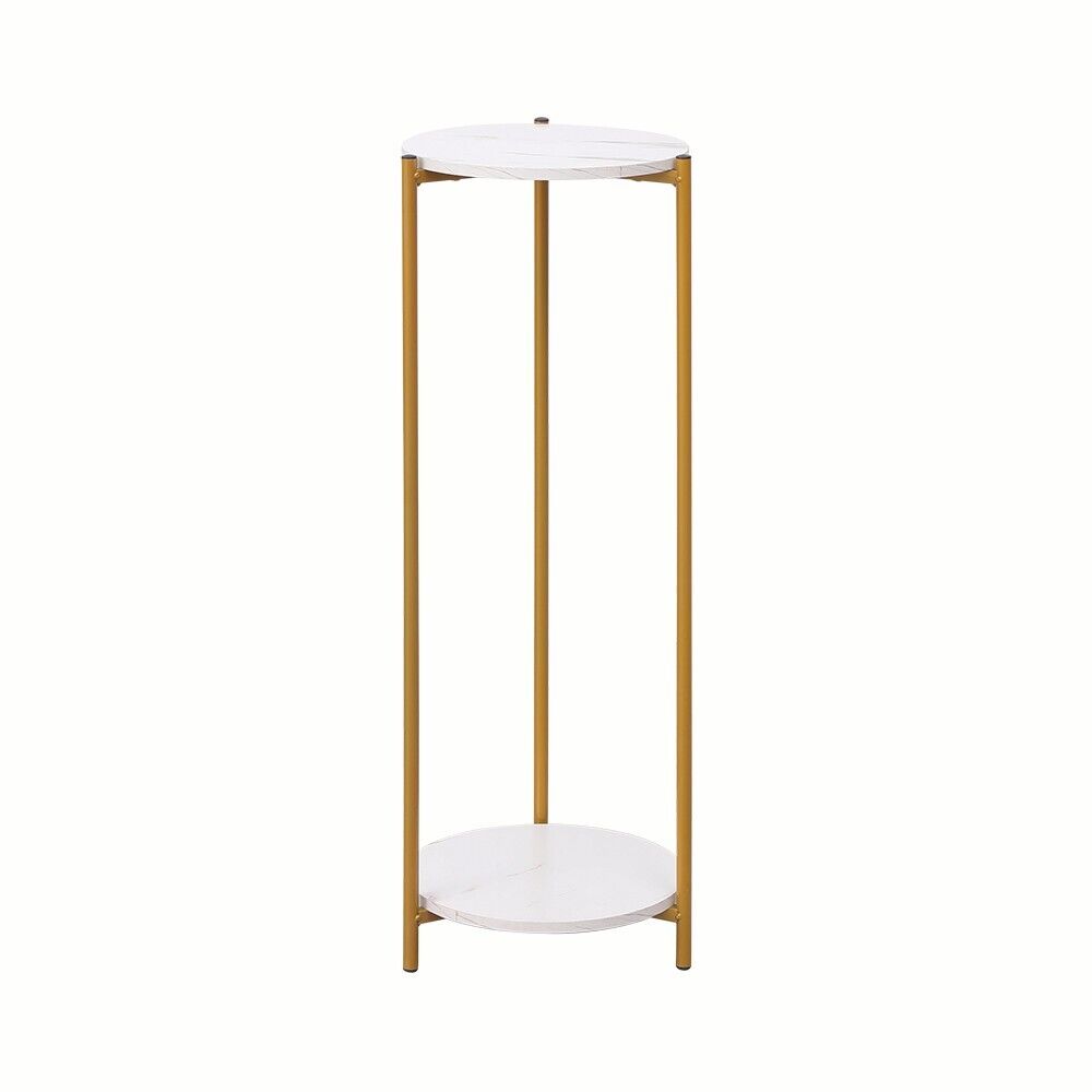 90cm Plant Stand Plant Holder Tall Side End Table 2-Tier with Golden Metal Frame