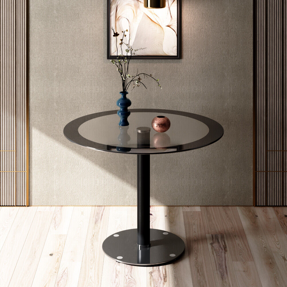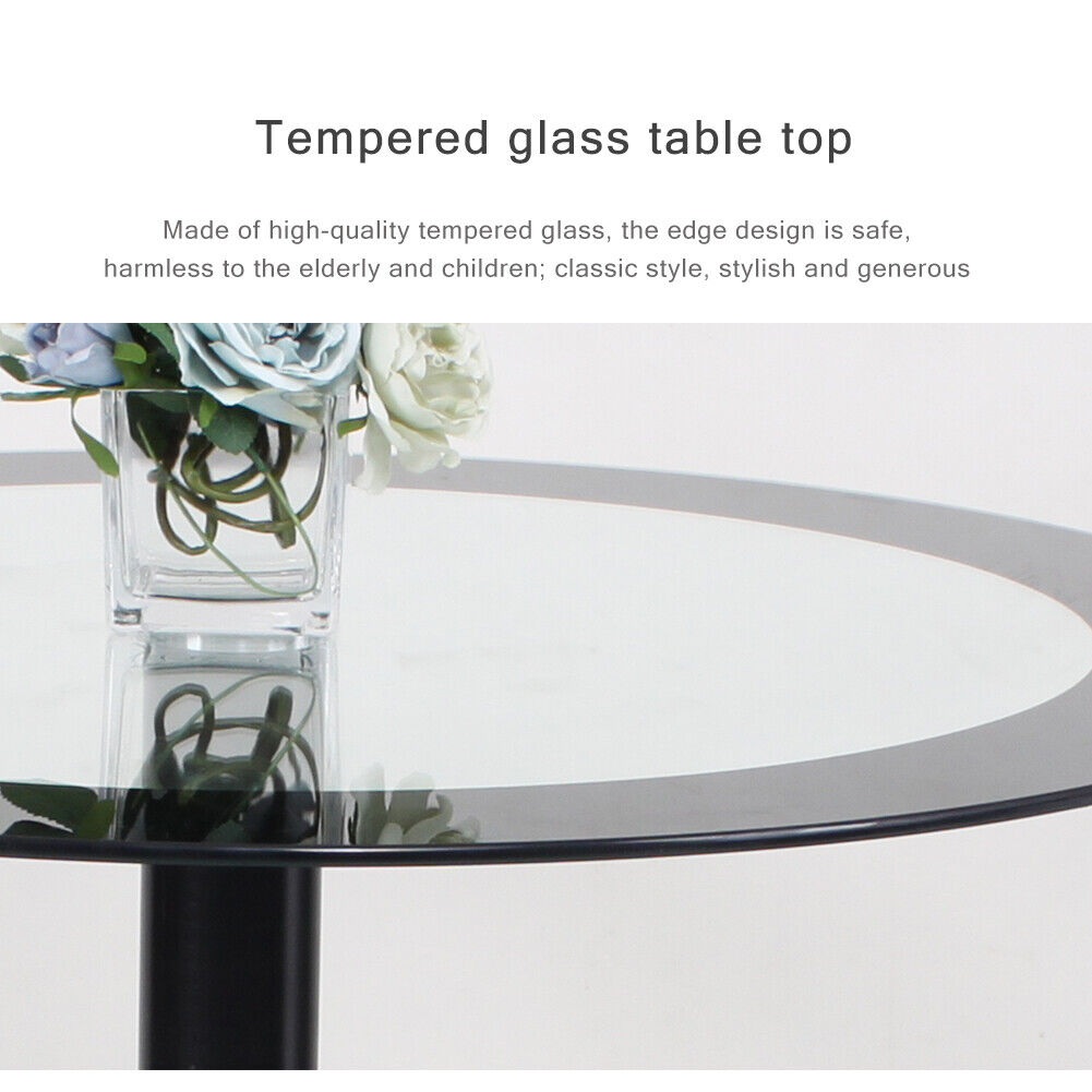 90cm Round Glass Dining Table and 2 Padded Chairs Set, Home Dining Kitchen Set