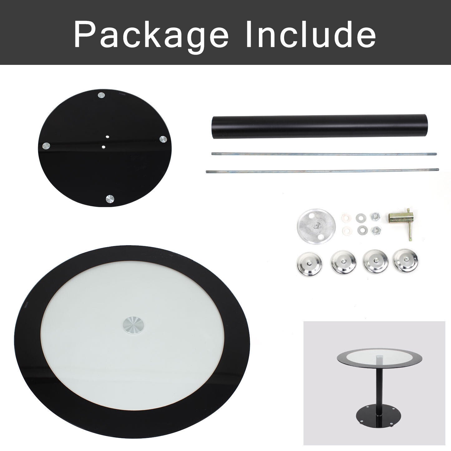 Table:Glass+Iron Pipe+Steel Rod, Chair:Faux Leather +Metal Legs