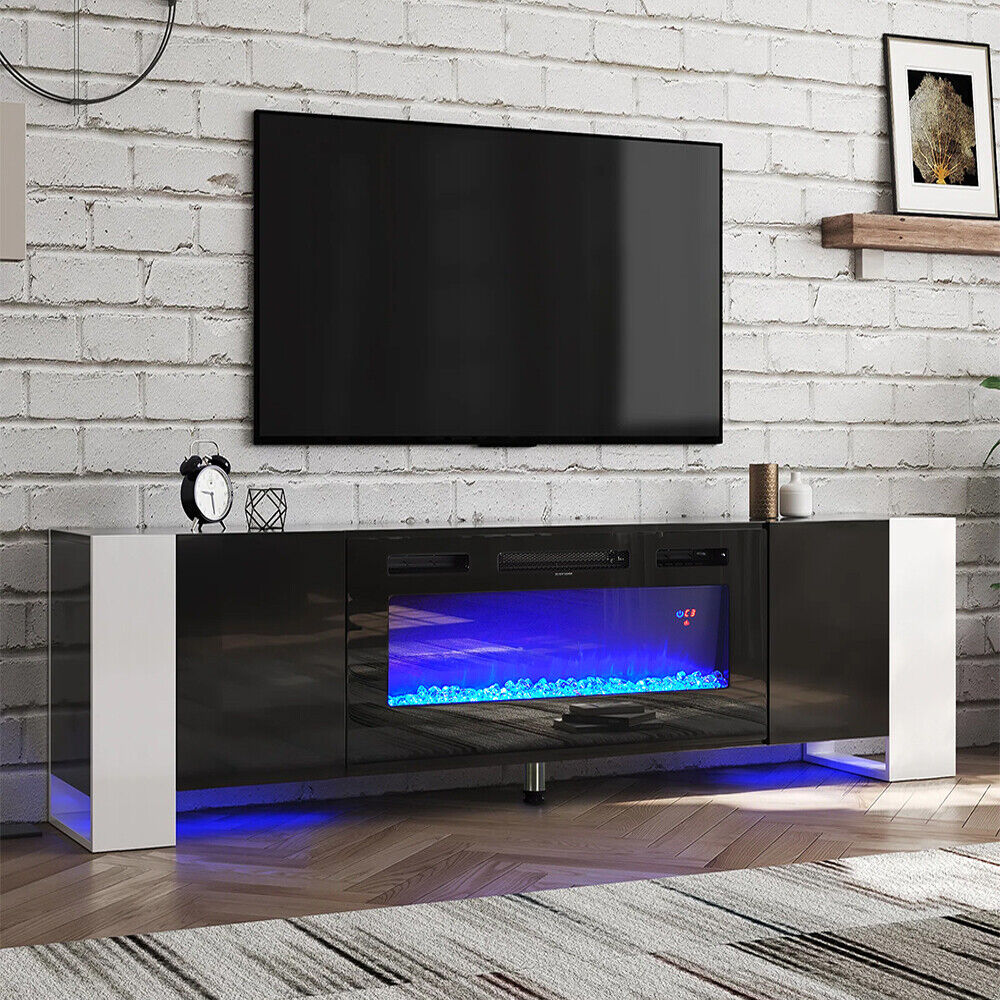 90inch Modern TV Stand Cabinet with 36" Electric Fireplace & LED Light Furniture