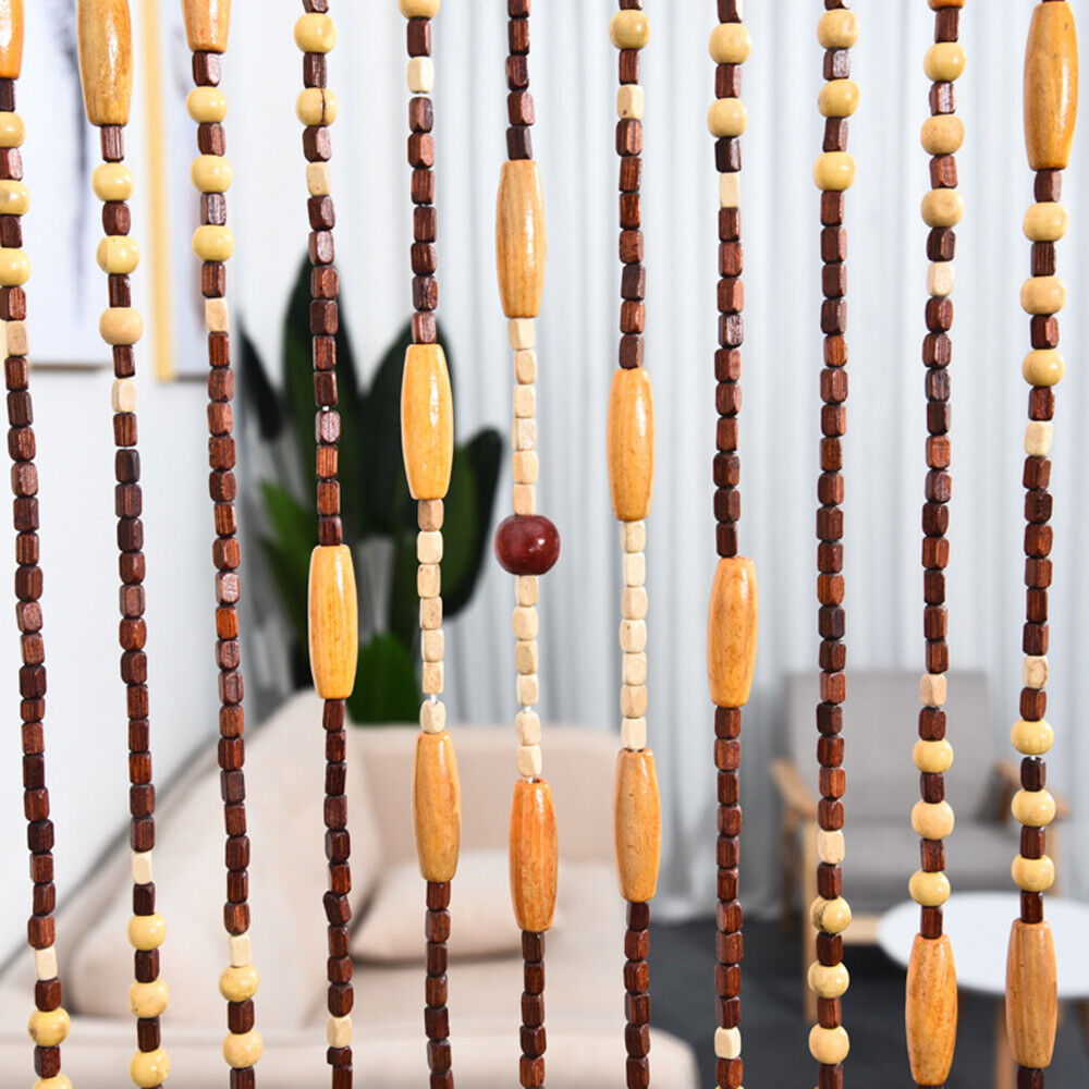 90x175cm*31 Lines Hanging Wooden Beads String Door Curtain Partition Divider UK
