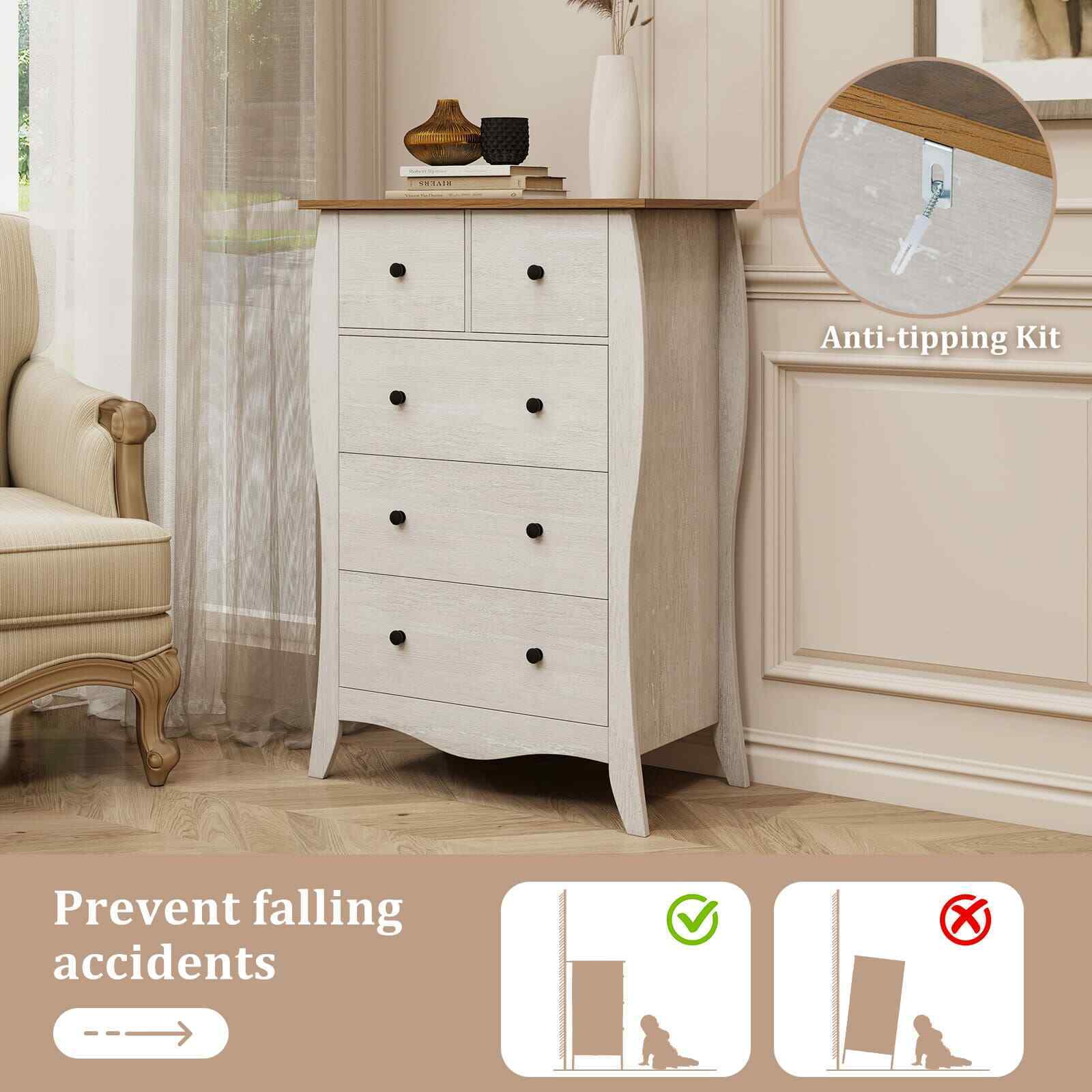 98cm Farmhouse Chest of Drawers Storage Organizer w/ Anti-tipping Kit-Grey