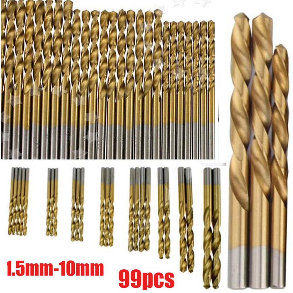 99pcs 1.5mm - 10mm High Speed Steel Drill Bit Titanium Coated HSS DIY Set Tool
