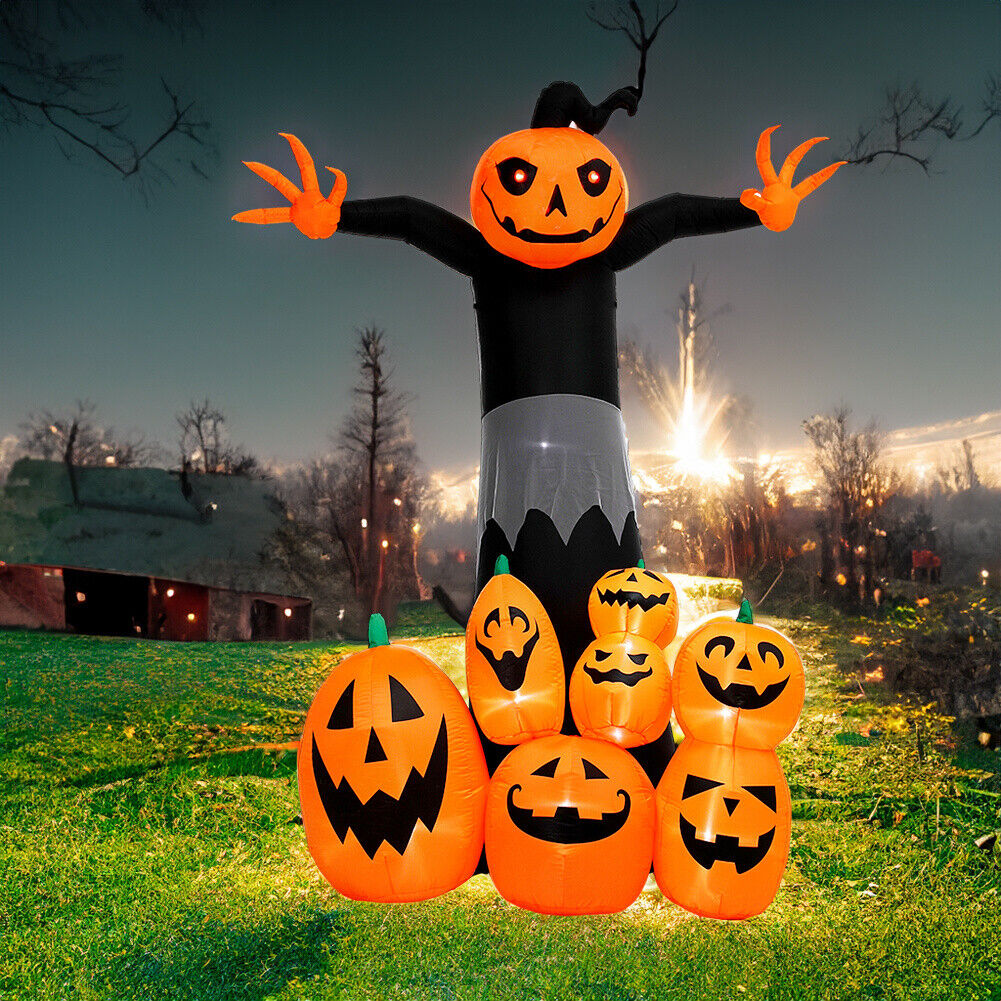 9FT 8FT Pumpkin Ghost Inflatable Halloween Decoration w/ LED Lights Accessories