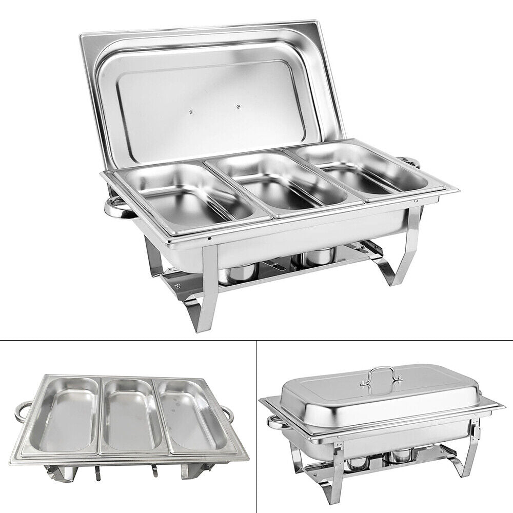 9L 3Pan Stainless Steel Chafing Dish Set Food Warmer For Buffet Banquet Catering