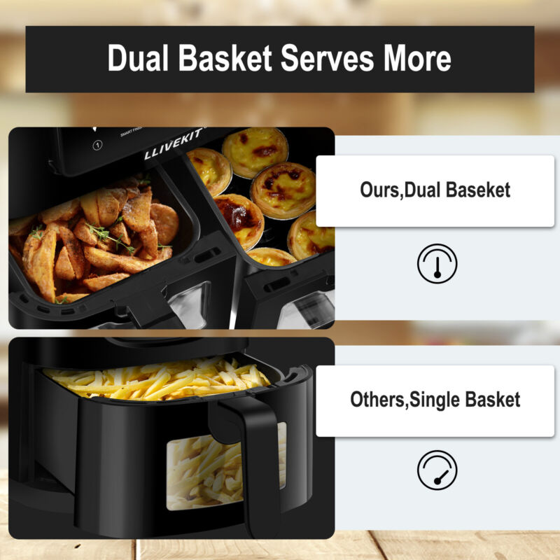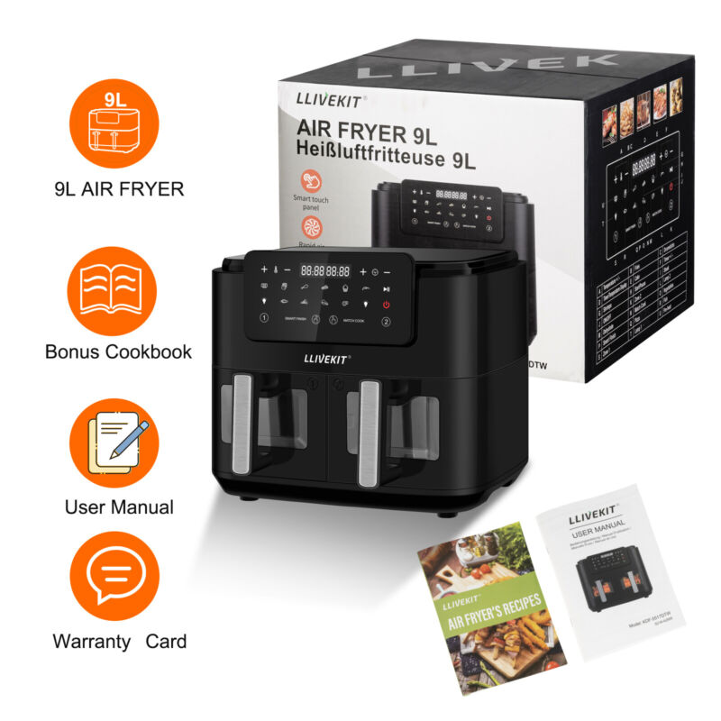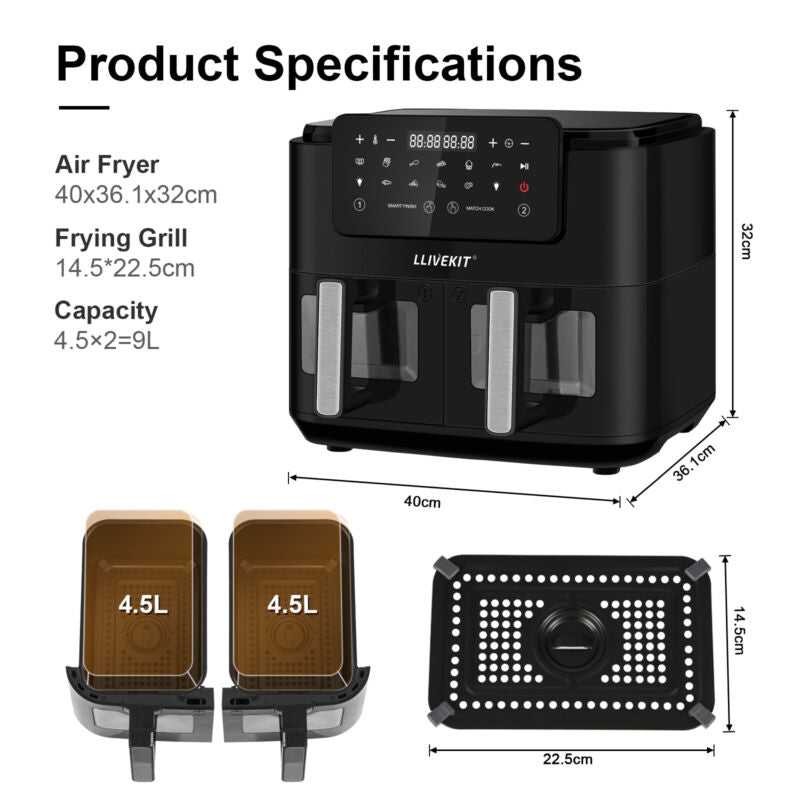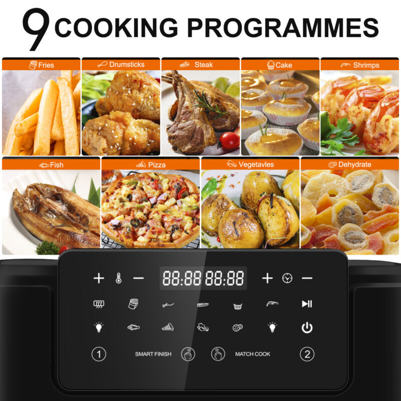 9L Air Fryer Oil Free Healthy Dual Zone Frying Cooker Low Fat Digital Oven 2400W