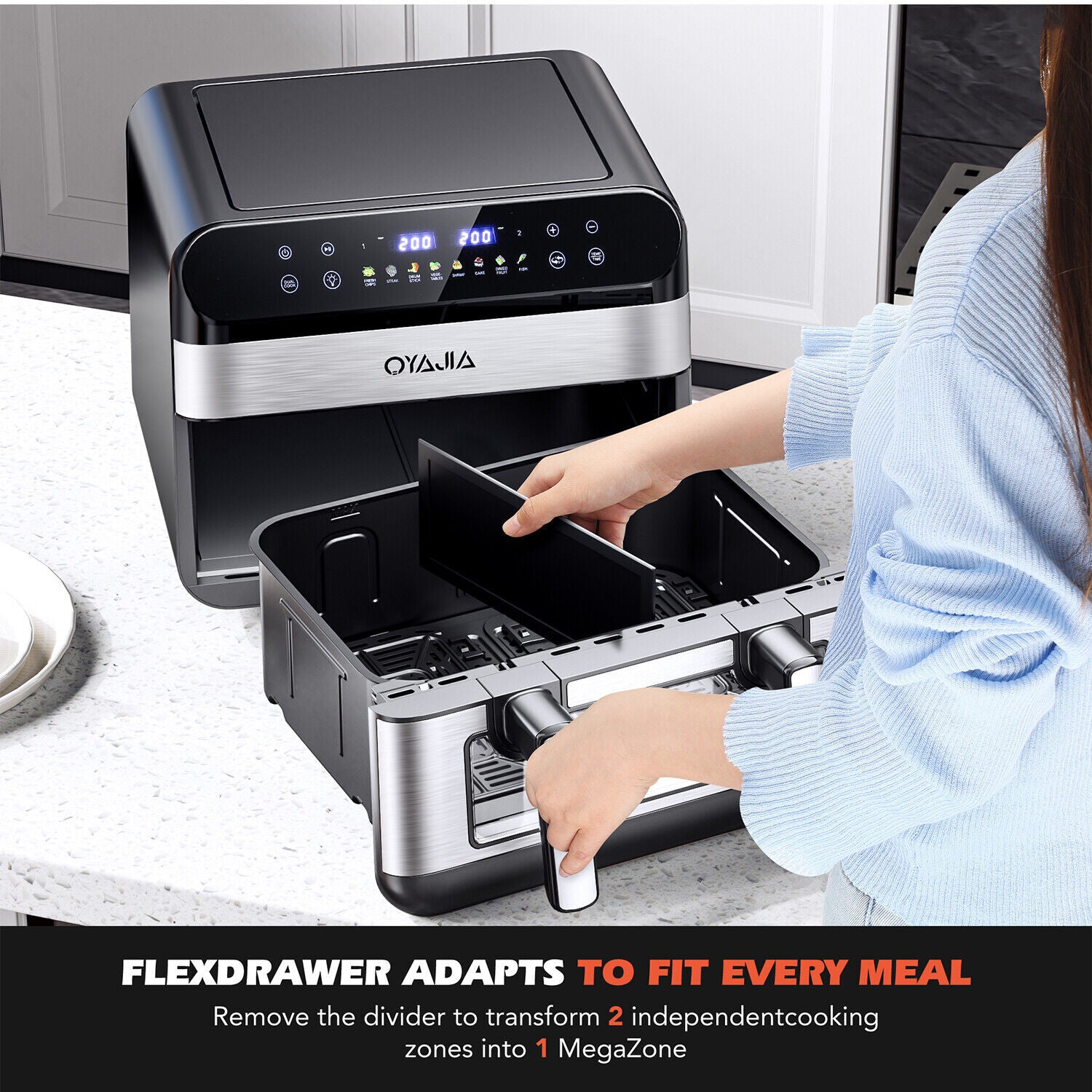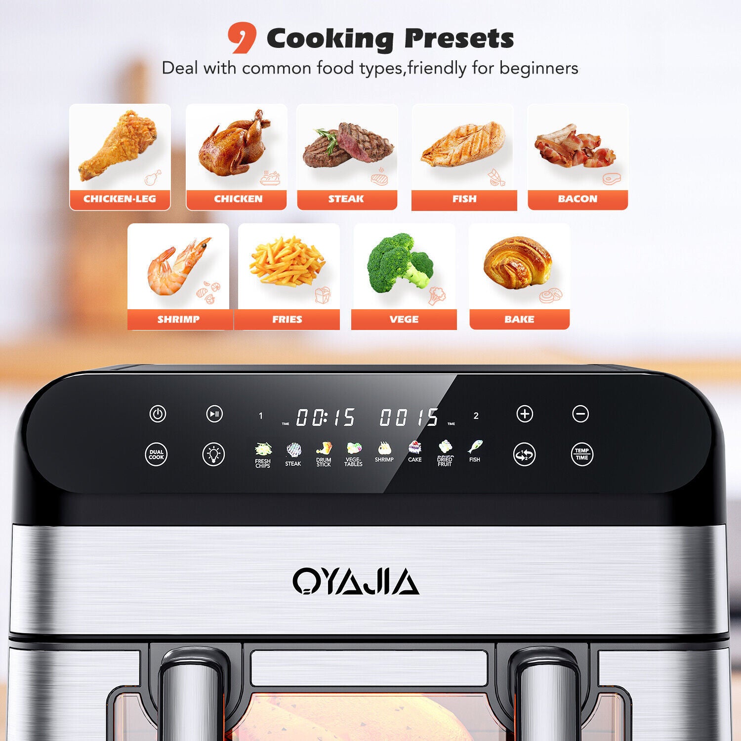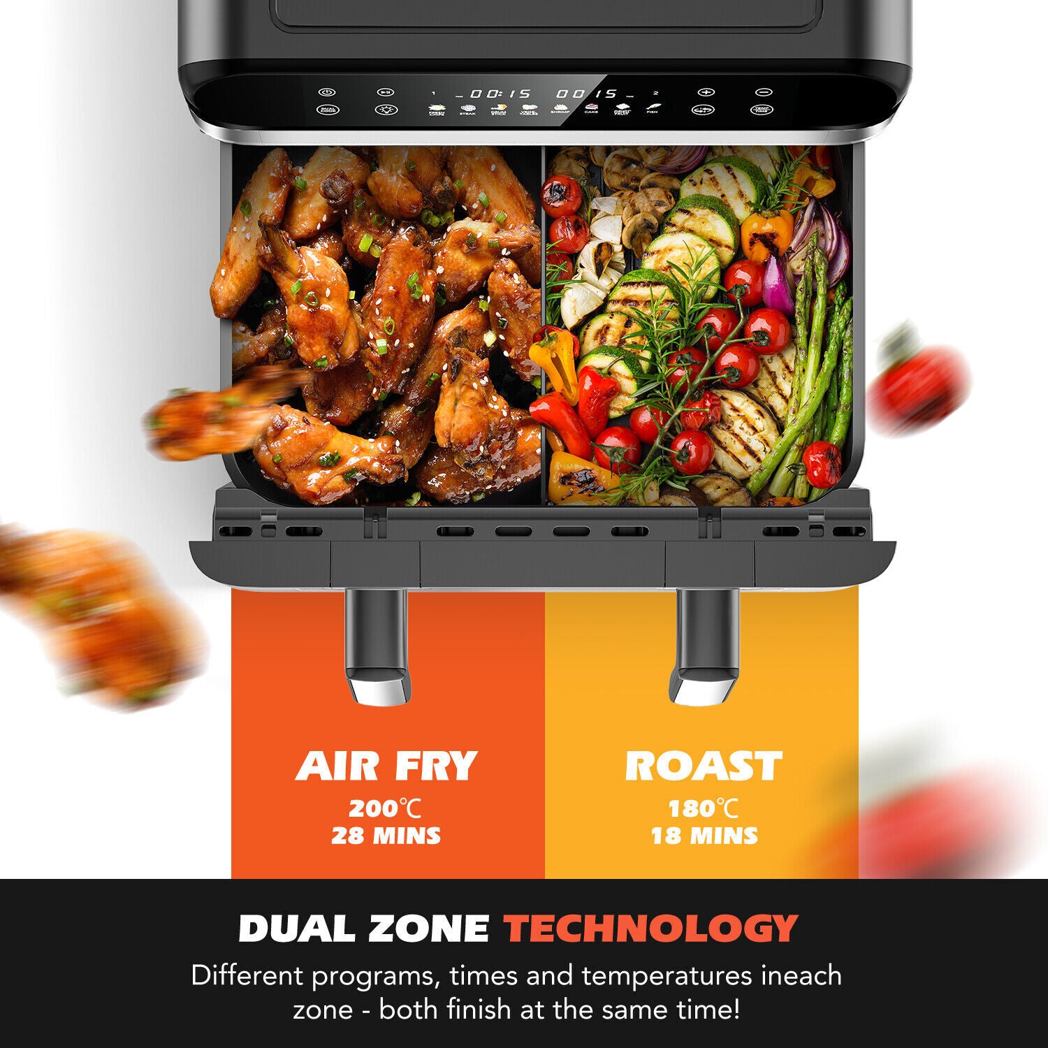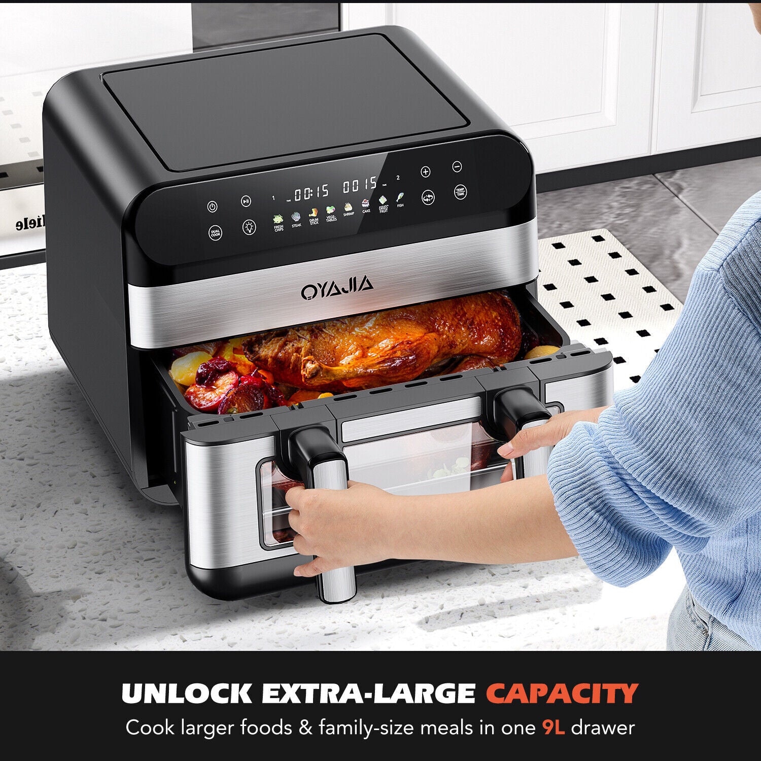 9L Large Dual Zone Digital Air Fryer Oven Cooker Oil Free Low Fat with Divider
