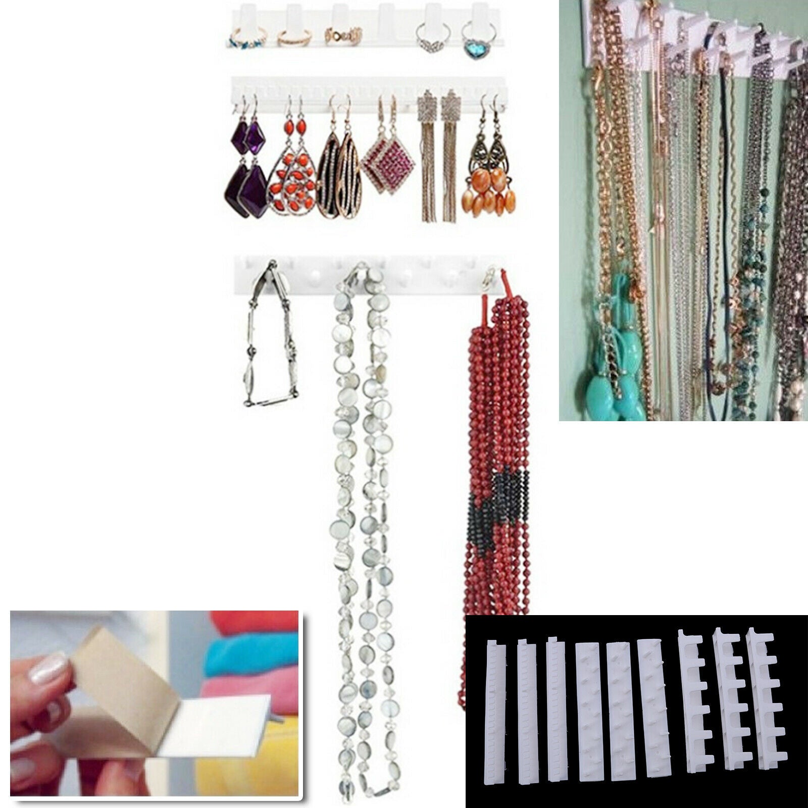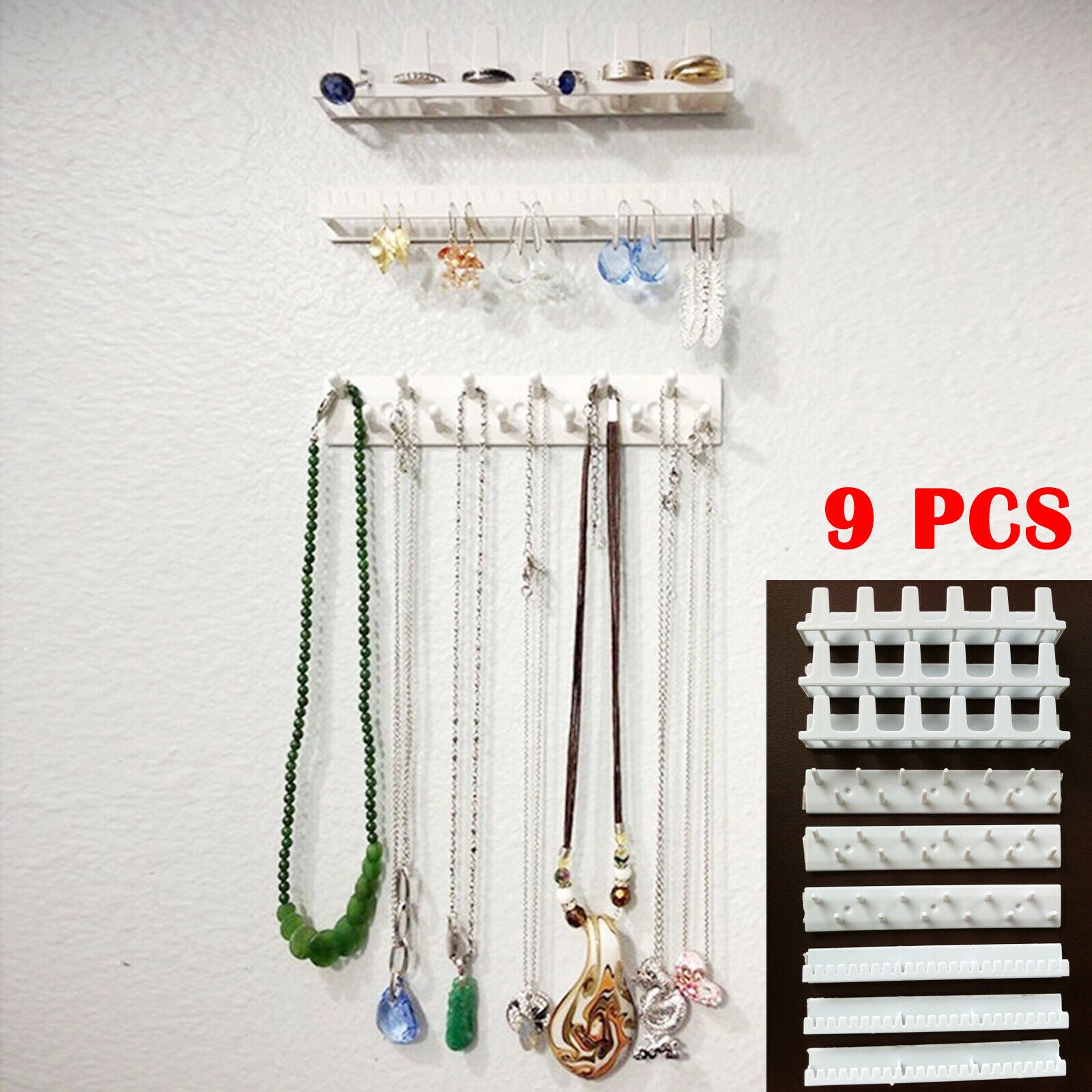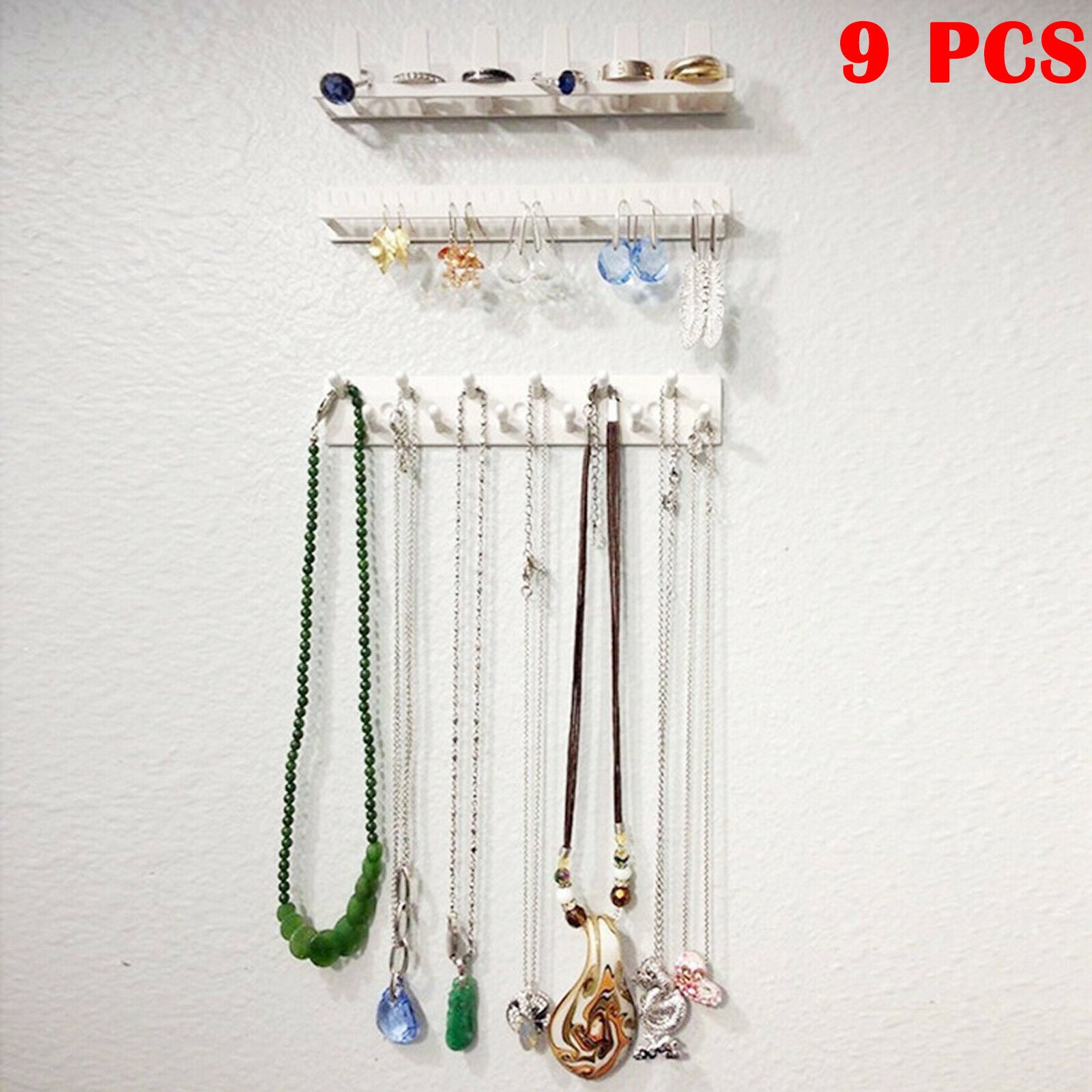 9x Jewelry Hanger Organizer Box Wall Bracket Necklace Bracelet Storage White
