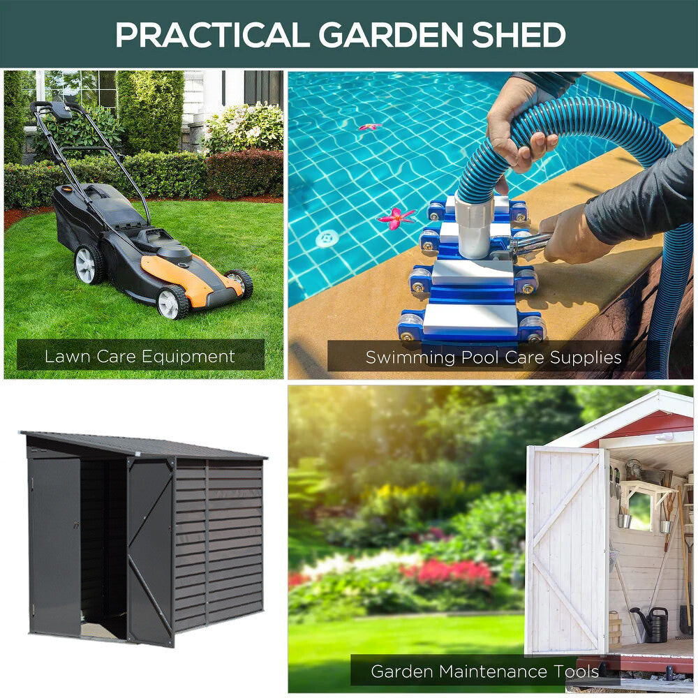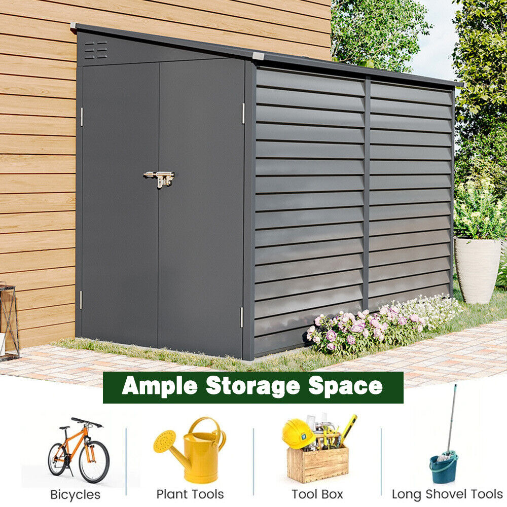 9x5ft Metal Garden Shed Pent Roof Outdoor Tool Bike Storage DoubleDoor Warehouse