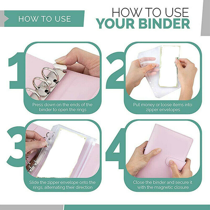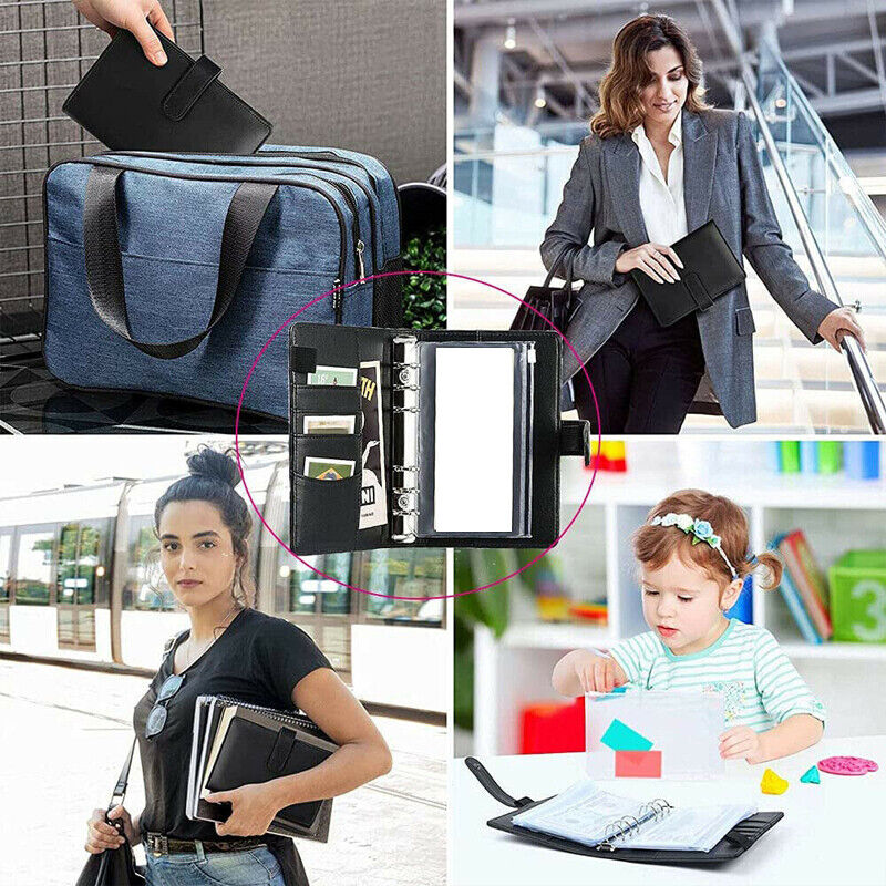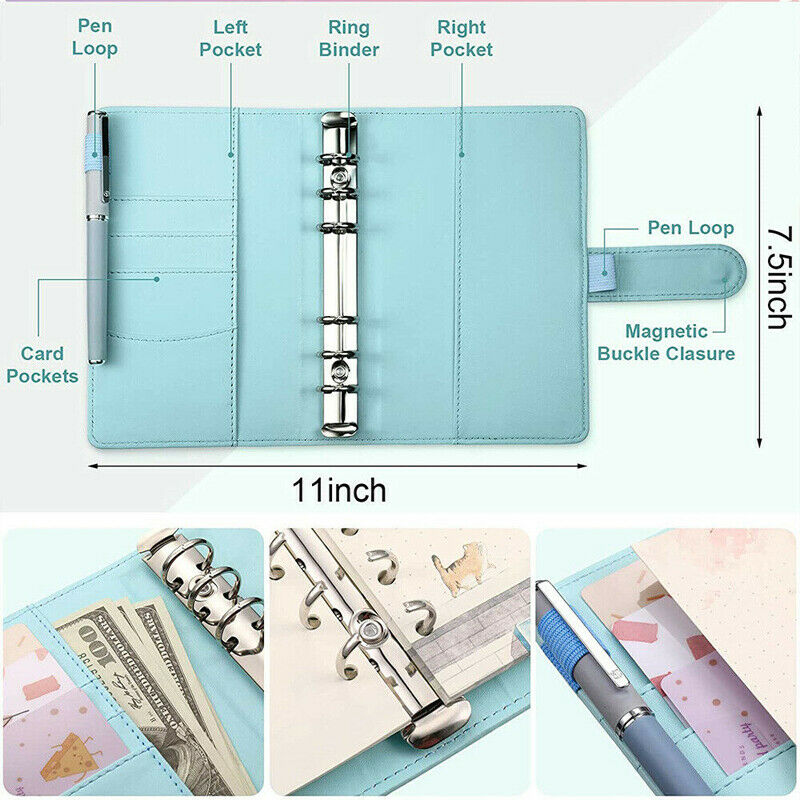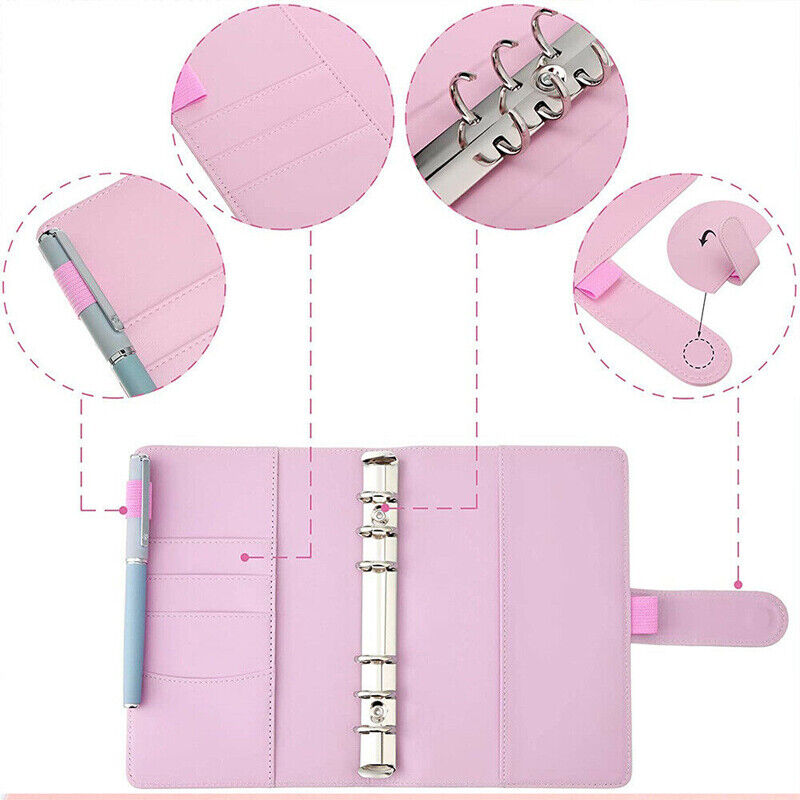 A6 Binder Budget Planner Organizer Cover Pockets Cash Wallet PU Leather Notebook