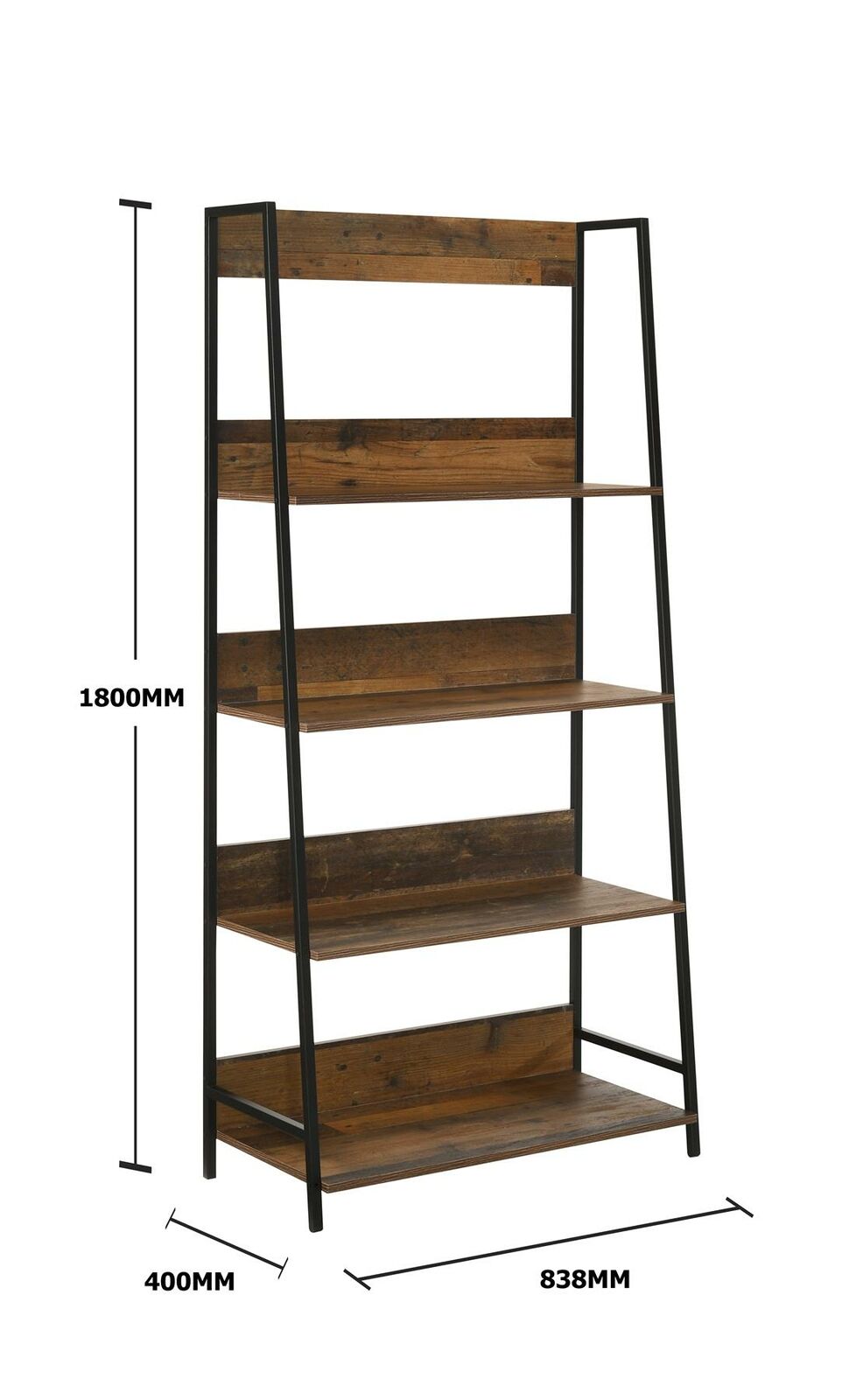 Abbey Wide Rustic Industrial Ladder Bookcase Desk Shelving Shelf Unit 4 Tier