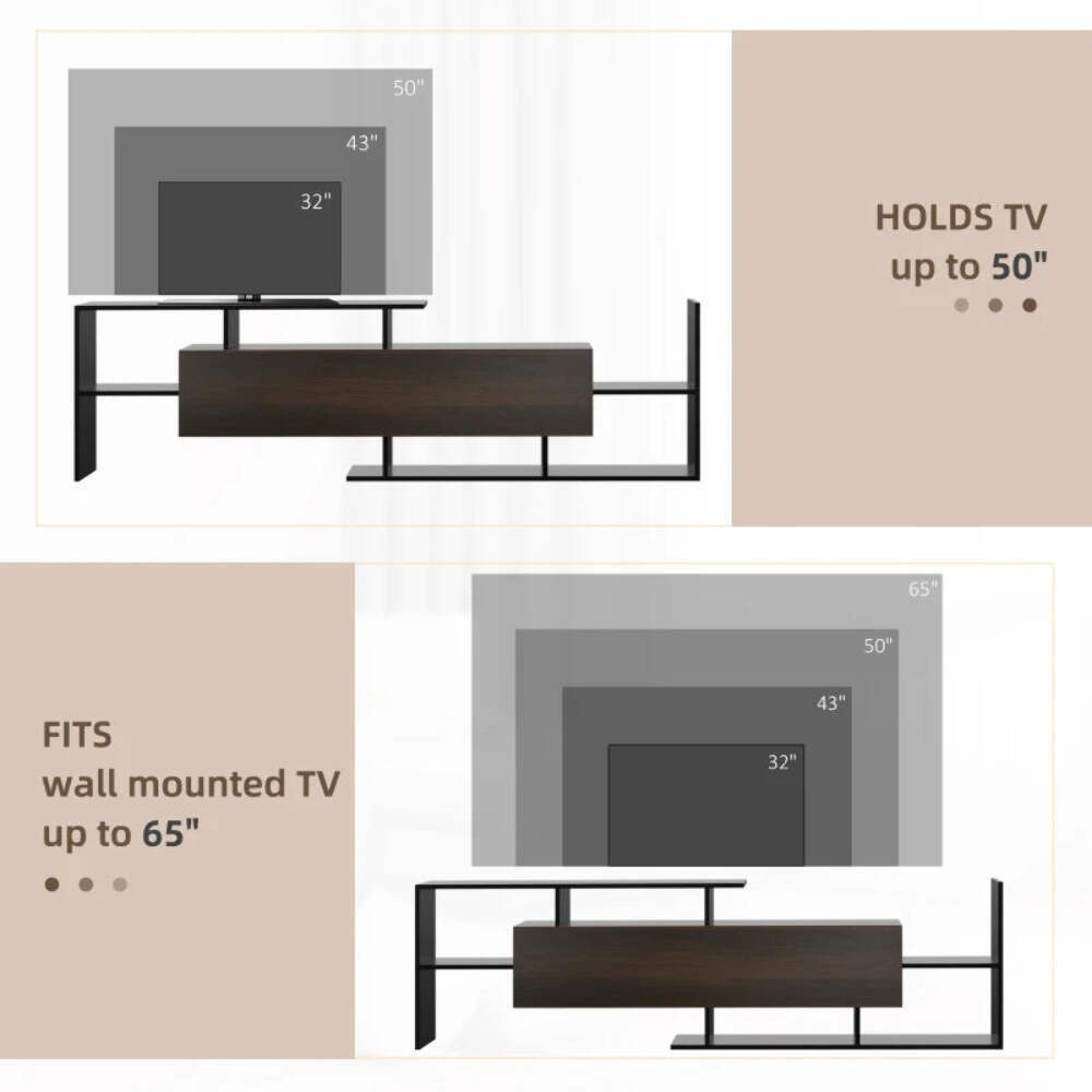 Abstract Style TV Stand with Cabinet and Wall Shelf Included