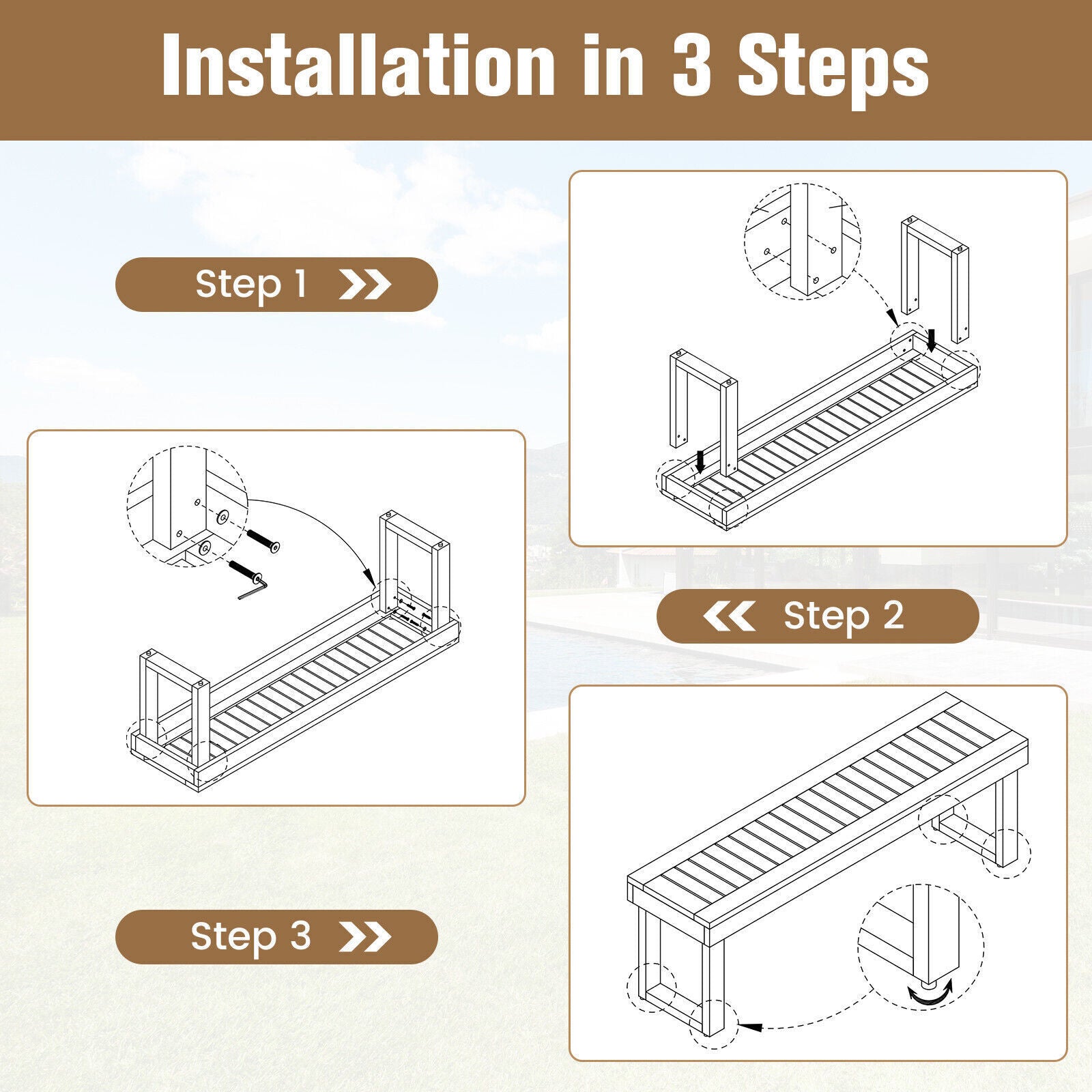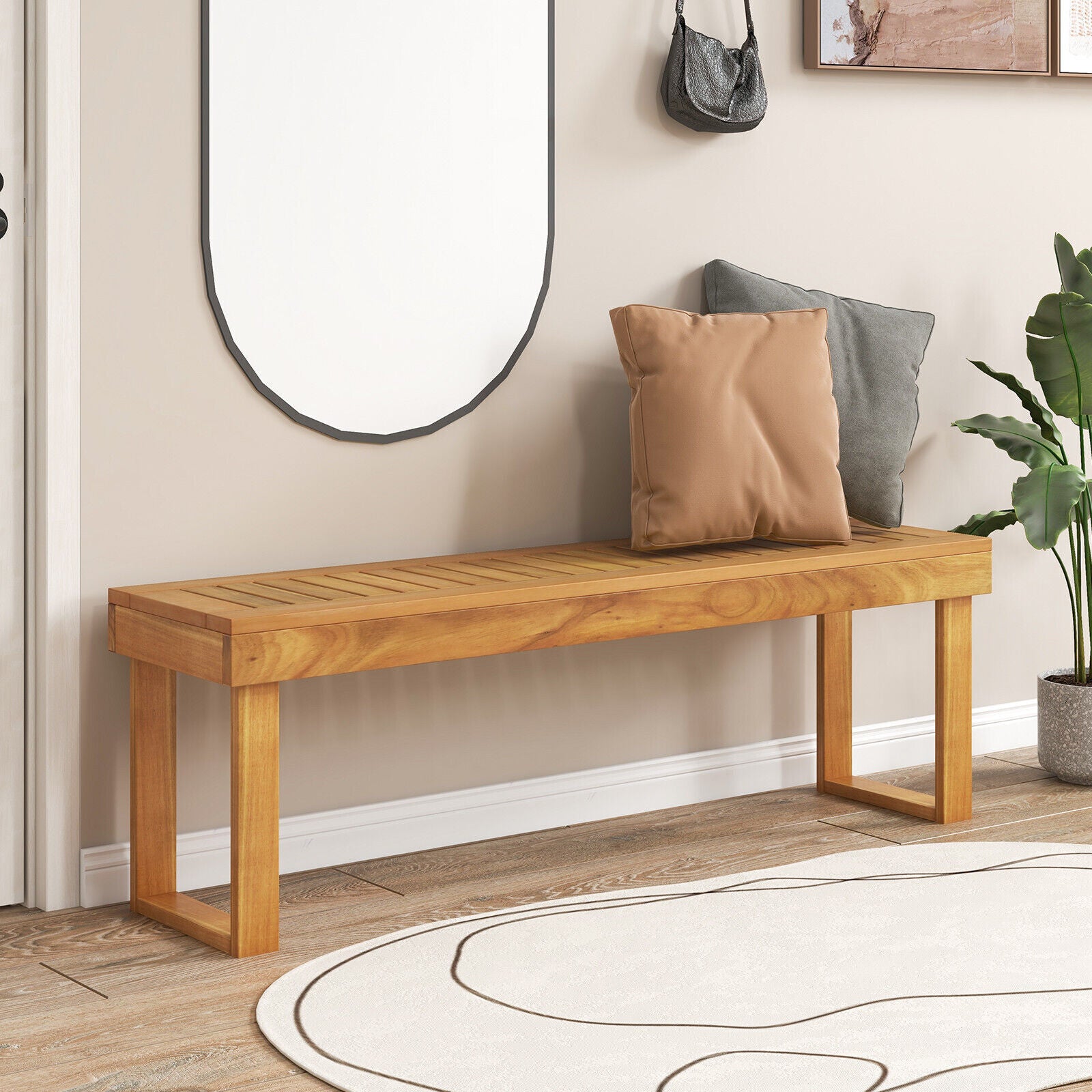 Acacia Wood Patio Bench Outdoor Dining Bench Backless Farmhouse Bench