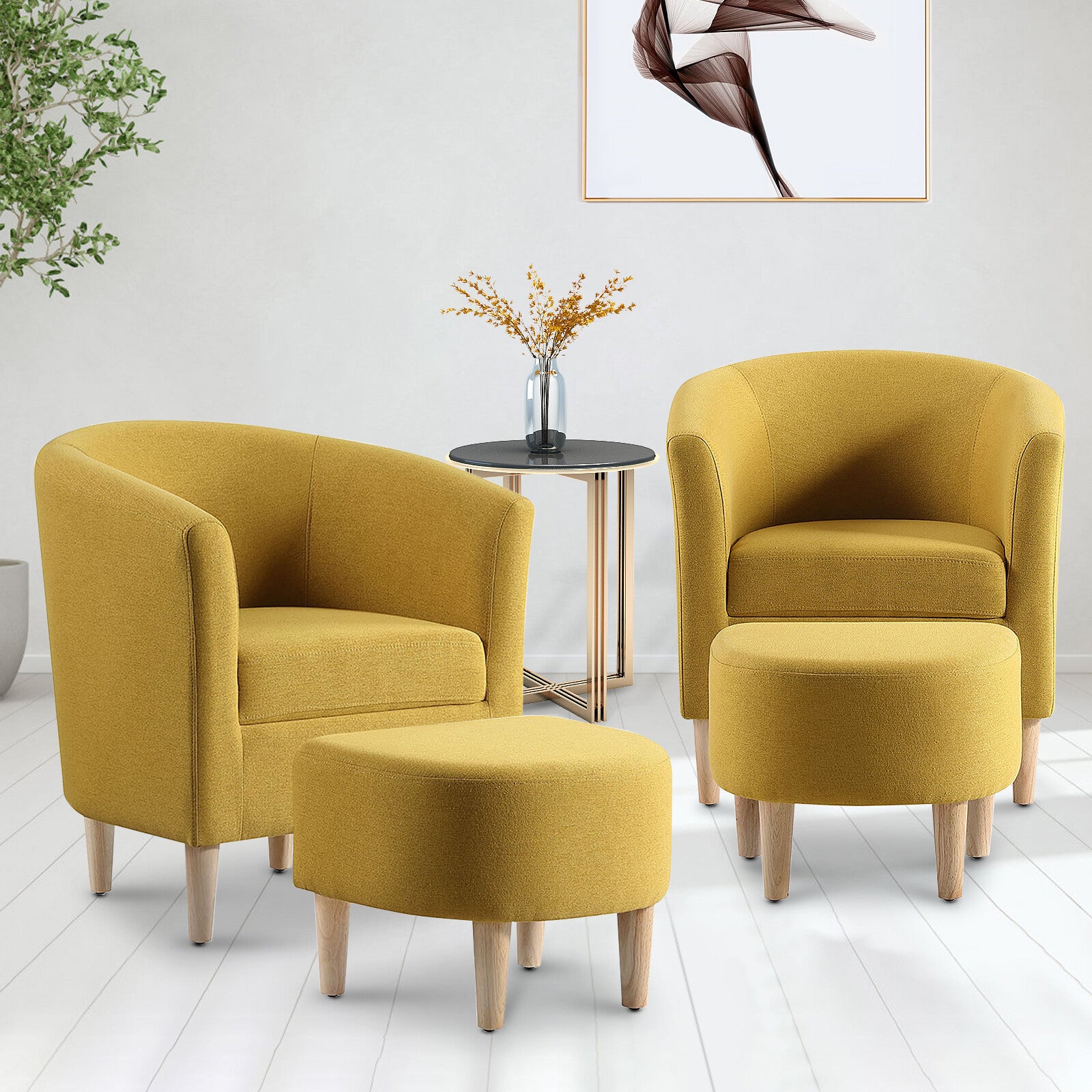 Accent Arm Chair Bedroom TV Reading Single Sofa Upholstered Club Chair &Ottoman