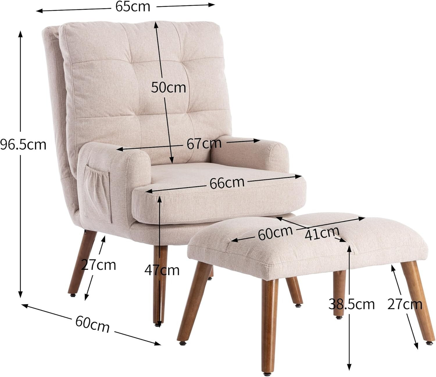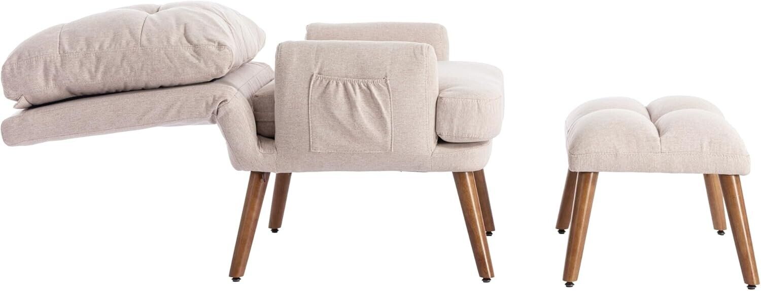 Accent Chair Armchair with Footstool Adjustable Backrest Wood Legs Lounge Chair