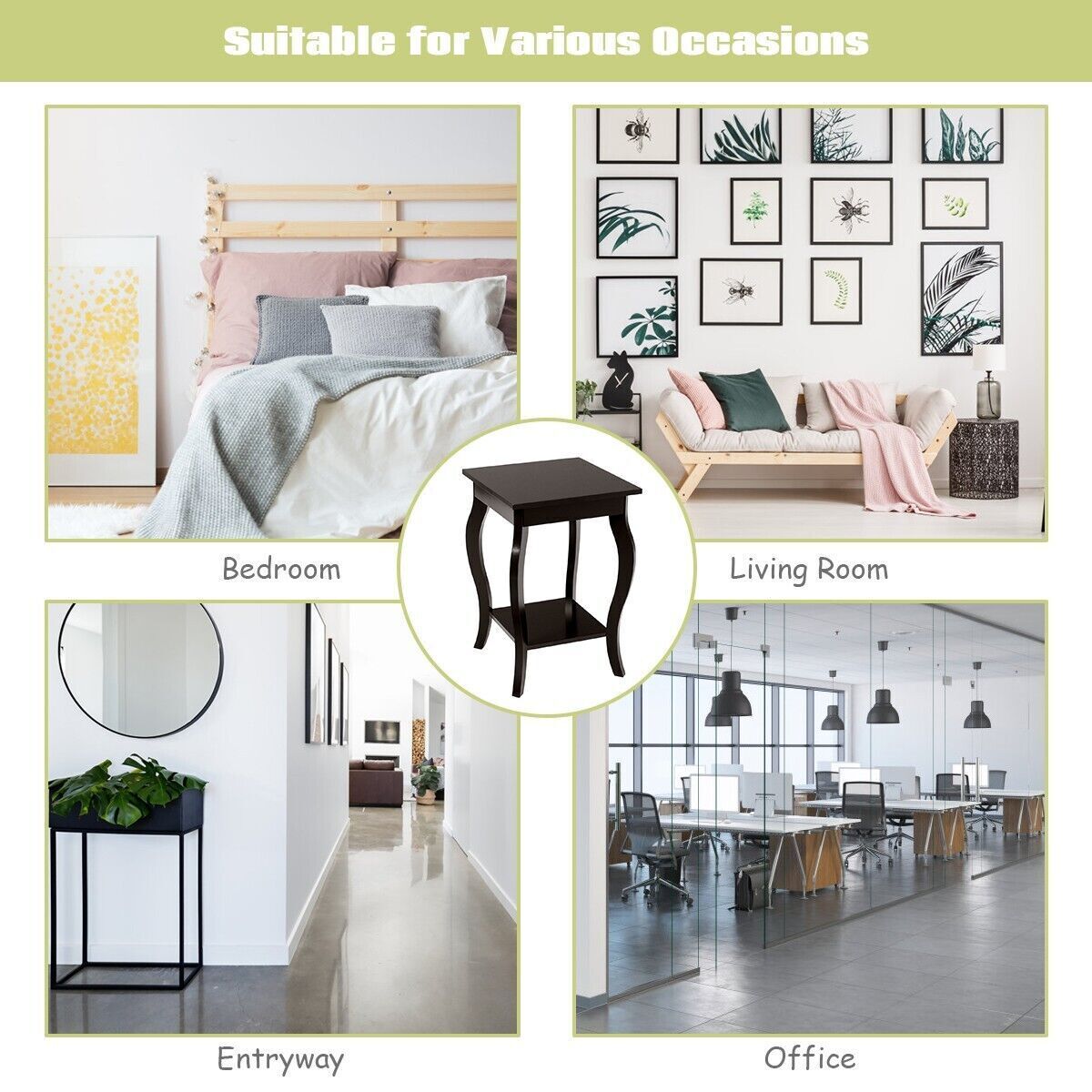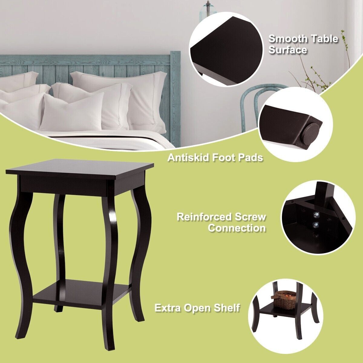Accent Table End Table with Curved Legs 2-Tier Open Storage Shelves-Coffee