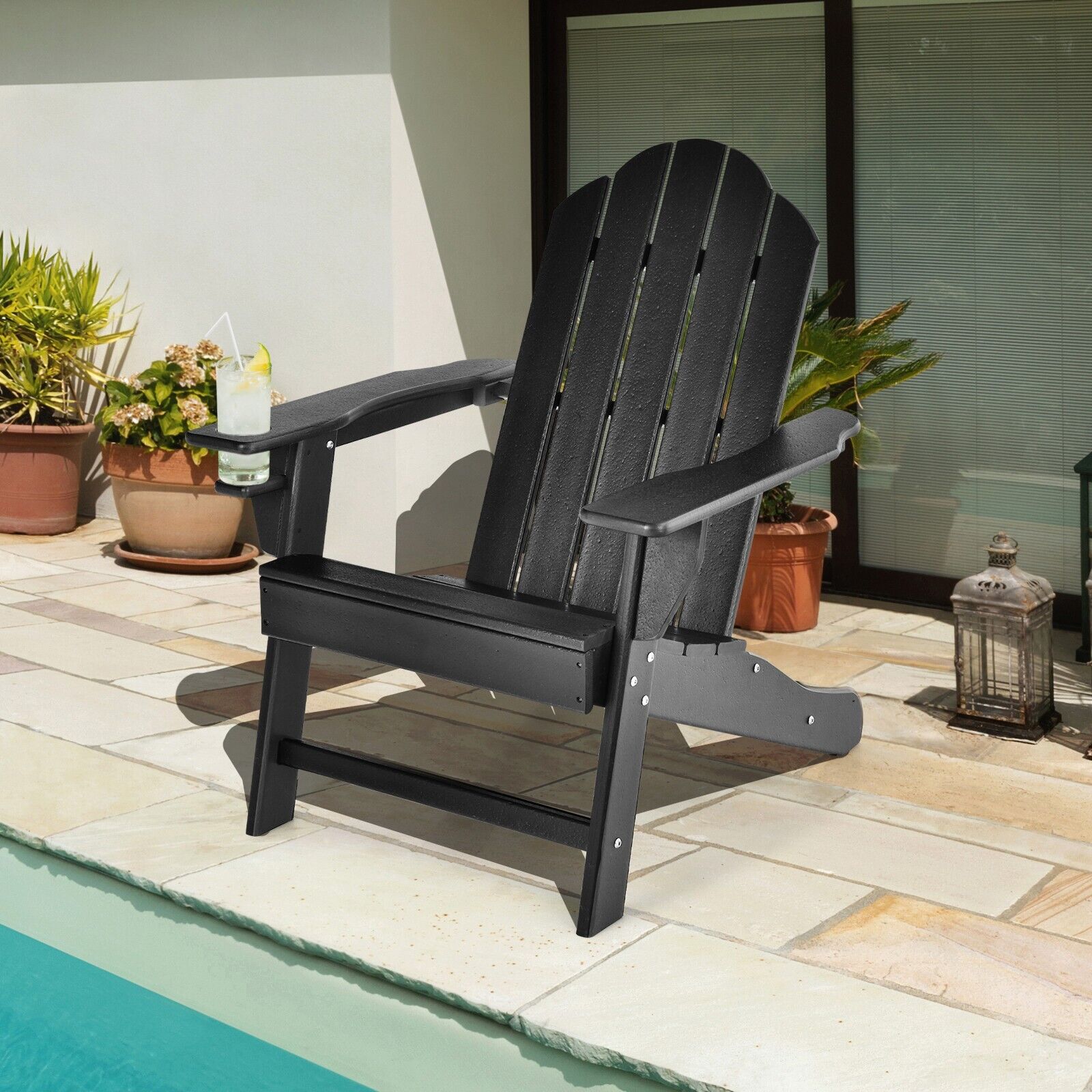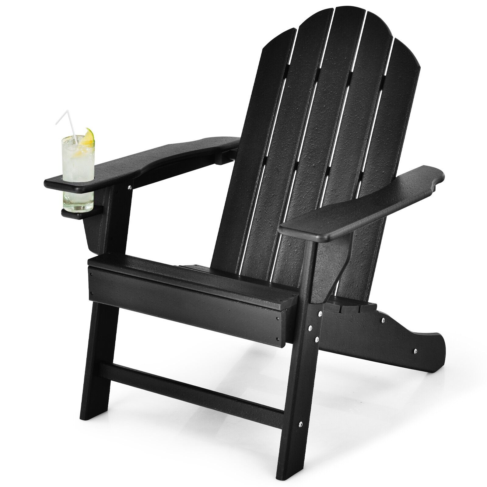 Adirondack Chair with Cup Holder Outdoor Patio Weather Resistant Lounge Chair