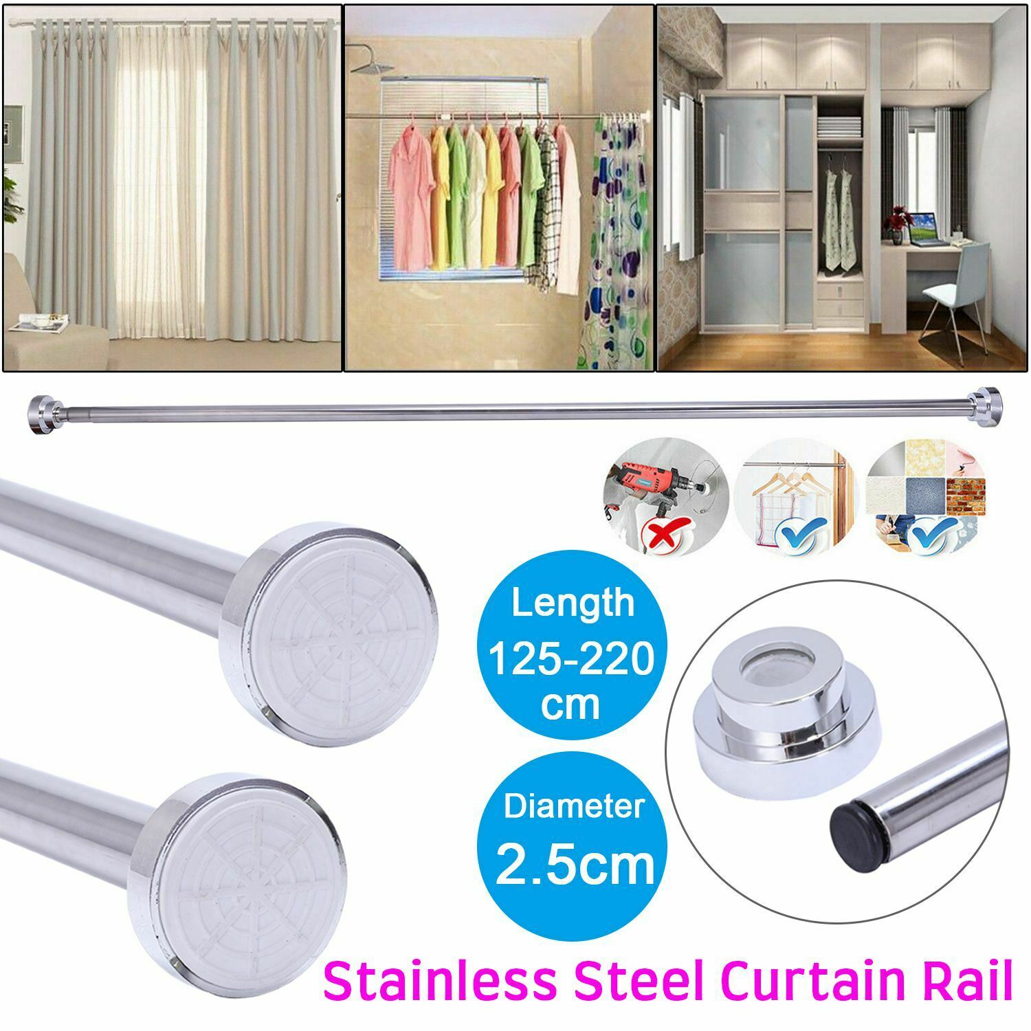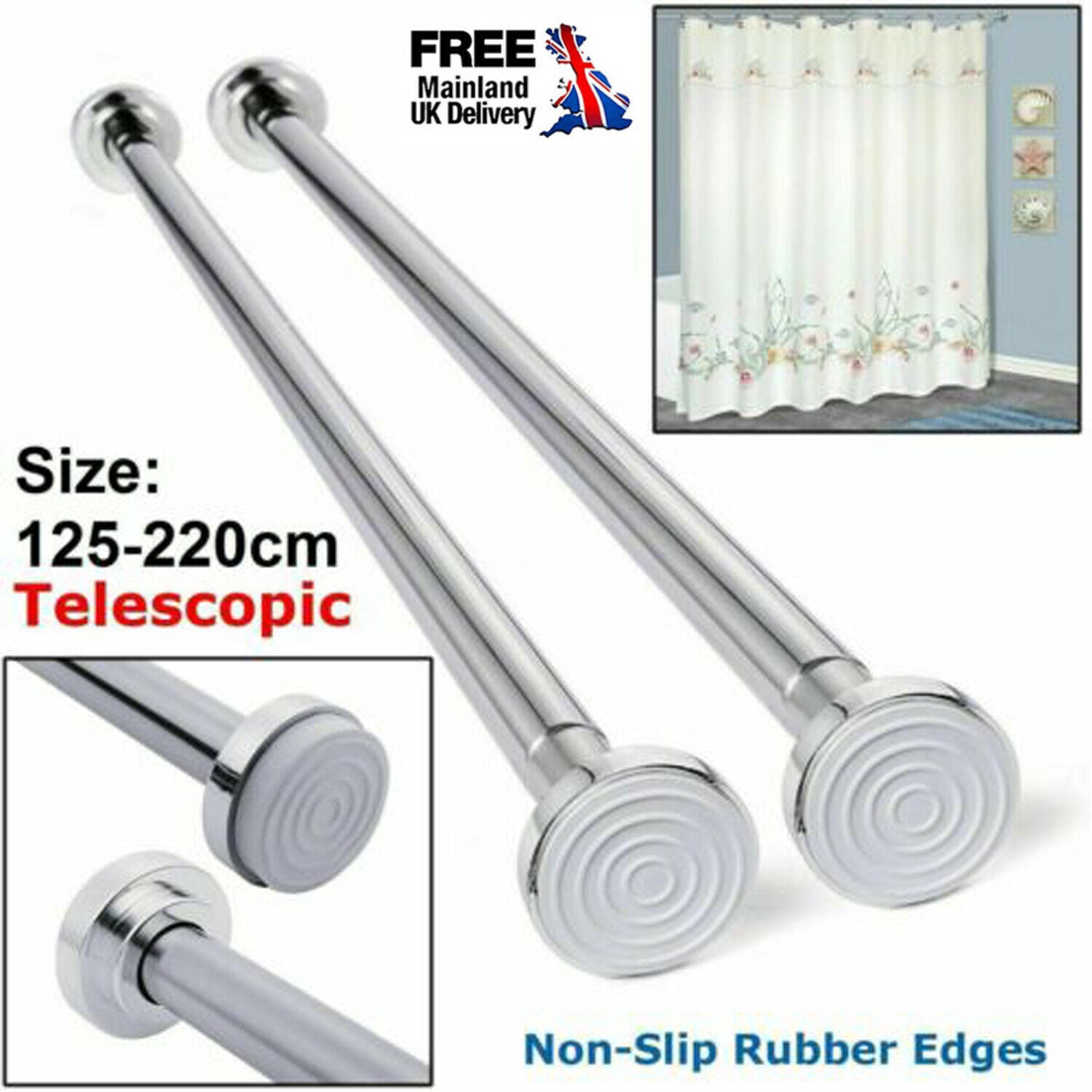 Adjust Telescopic Shower Curtain Rail Extendable 125-220cm Pole Rod Bath Chrome