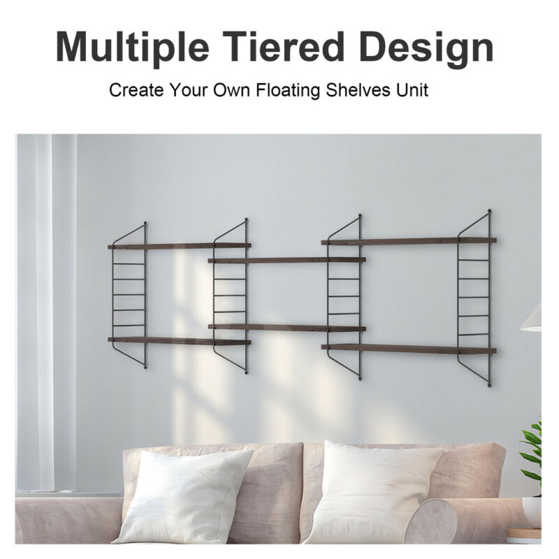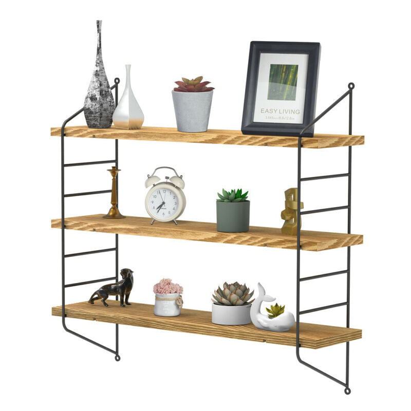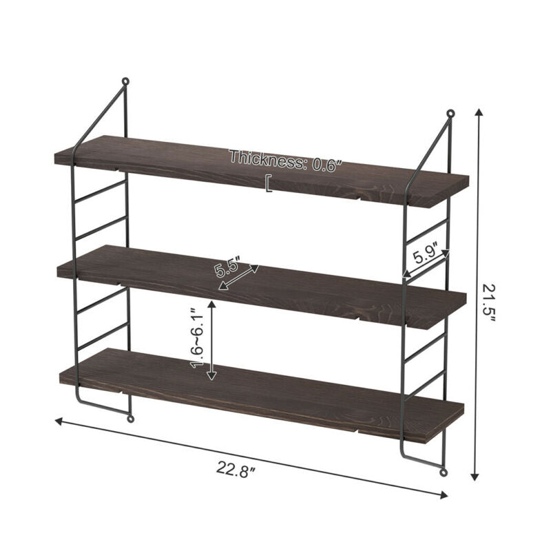 Adjustable 3 Tier Wall Floating Shelf with Metal Brackets Strong Bearing Shelves