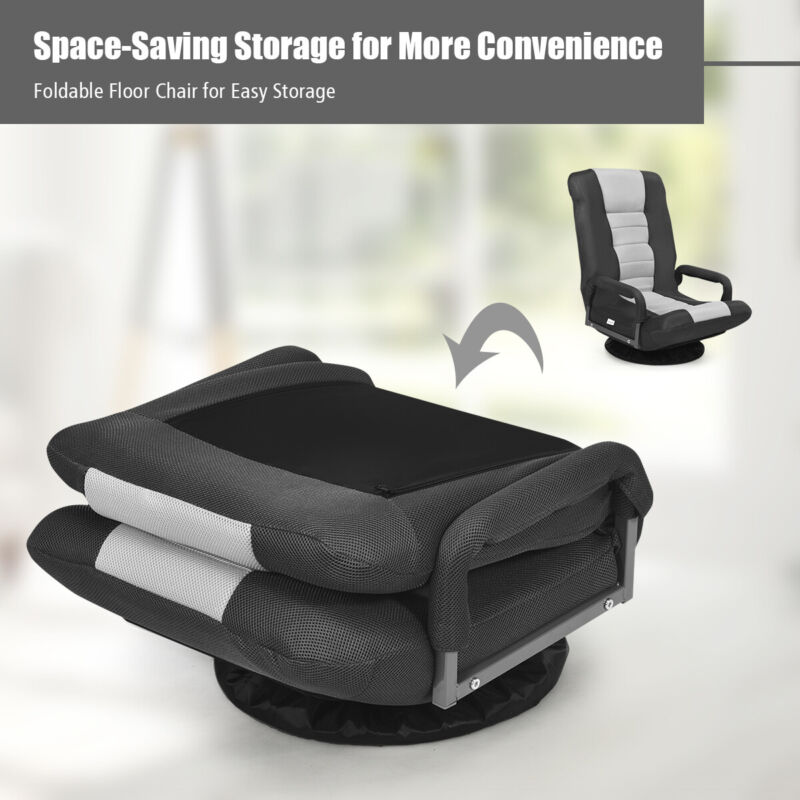 Adjustable 6-Position Floor Chair Folding Floor Gaming Chair w/ 360° Swivel Base