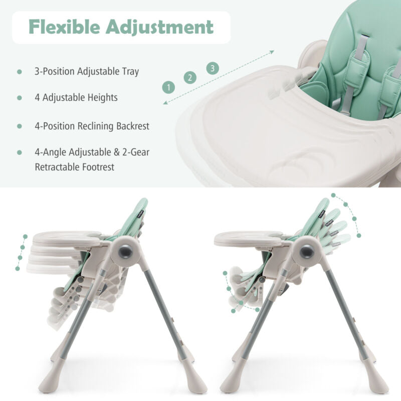 Adjustable Baby High Chair Foldable Reclining Infant Highchair Removable Trays