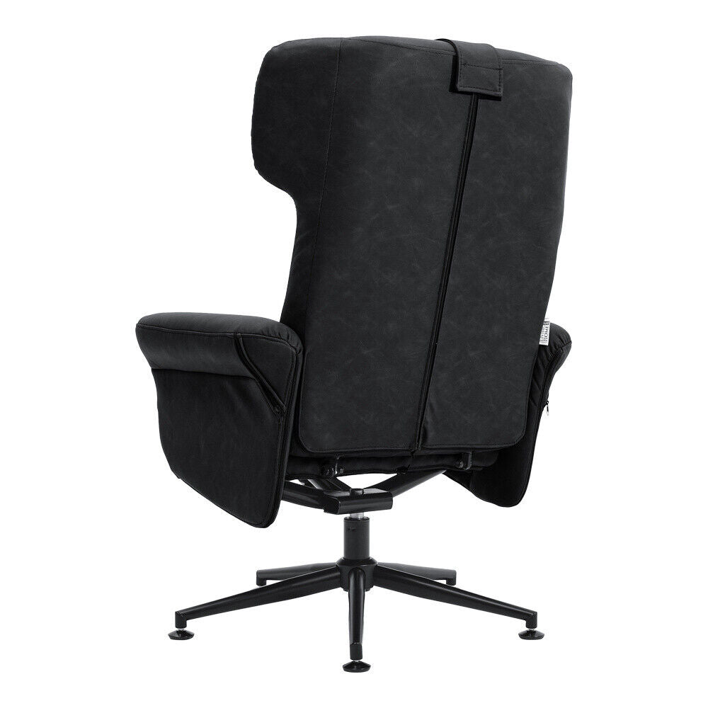 Adjustable Backrest Manual Recliner Armchair PU Leather Swivel Chair w/Footstool