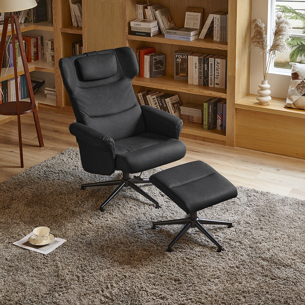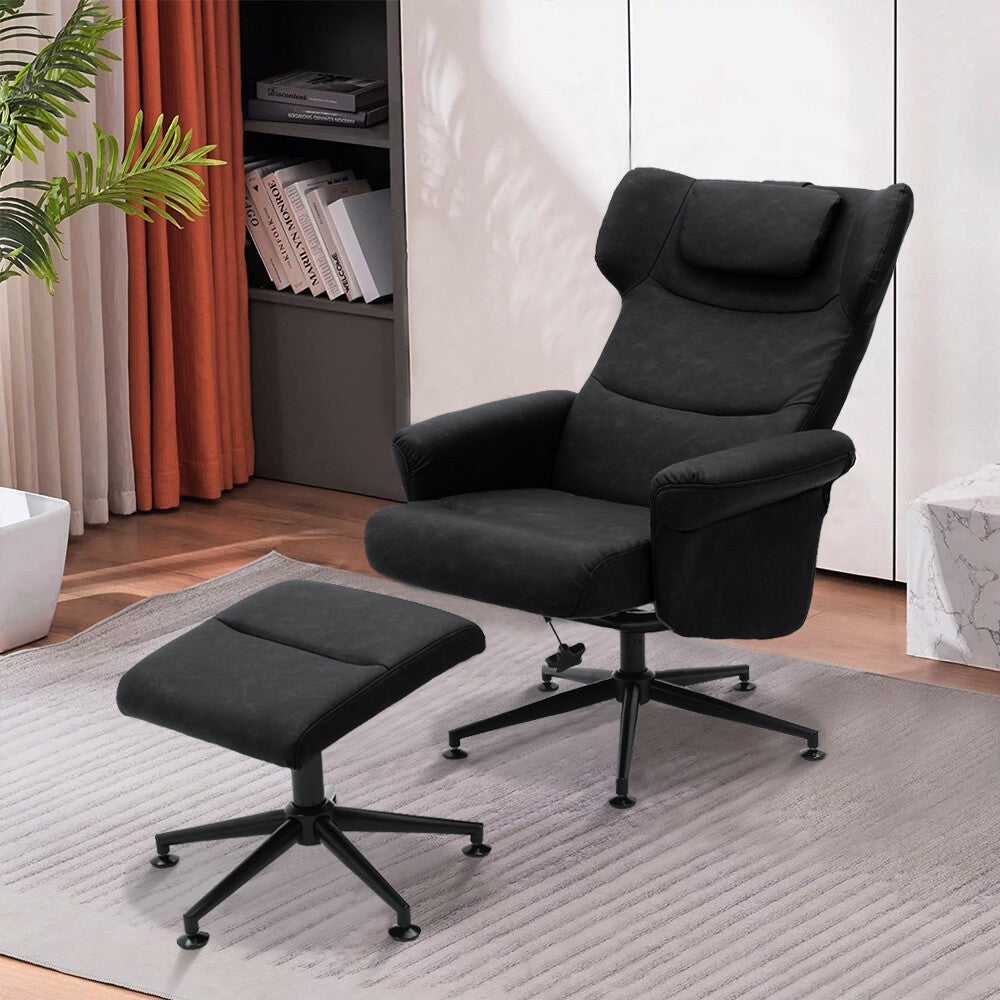 Adjustable Backrest Manual Recliner Armchair PU Leather Swivel Chair w/Footstool