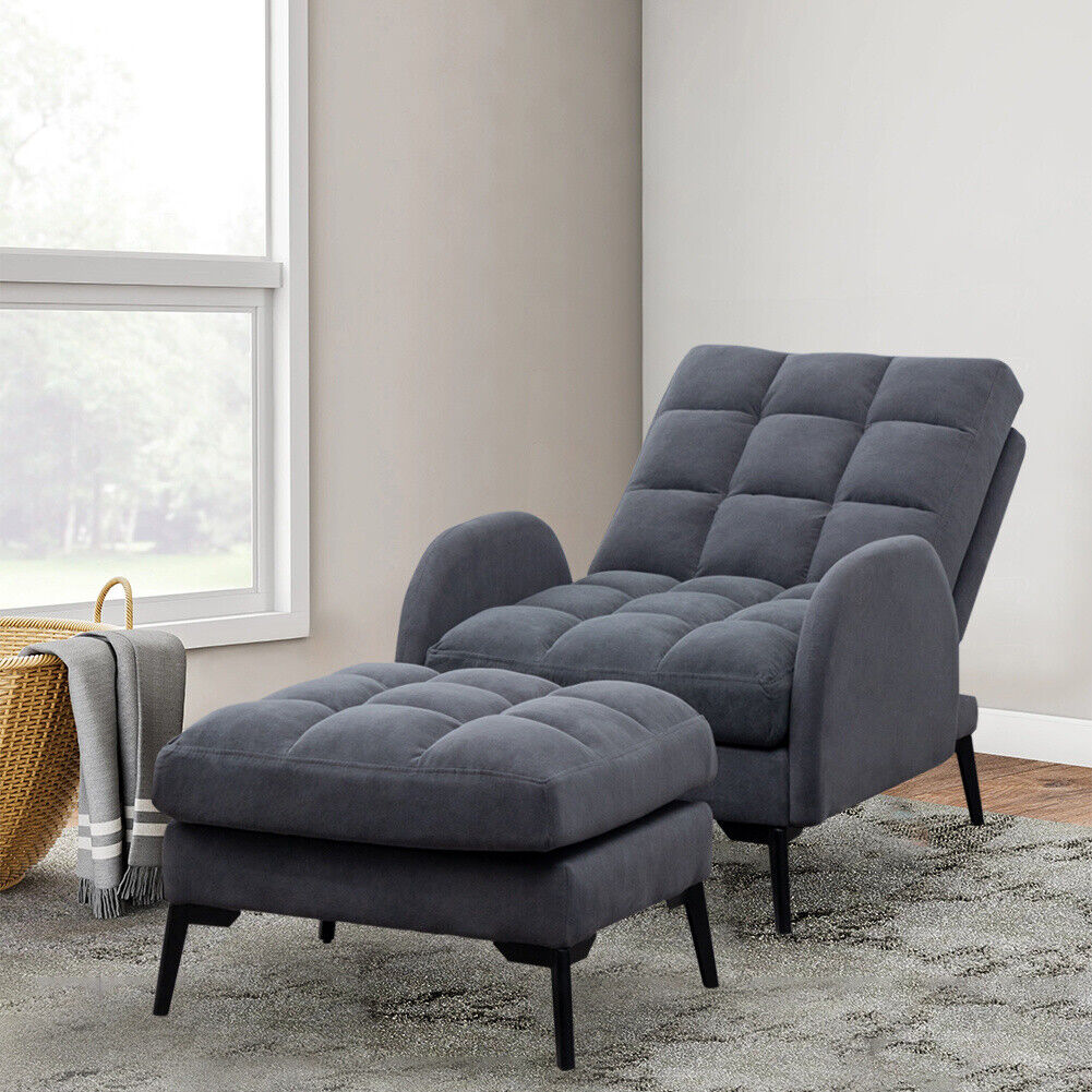 Adjustable Backrest Sleeper Recliner Lounge Chair Cube Back Armchair w/Footstool