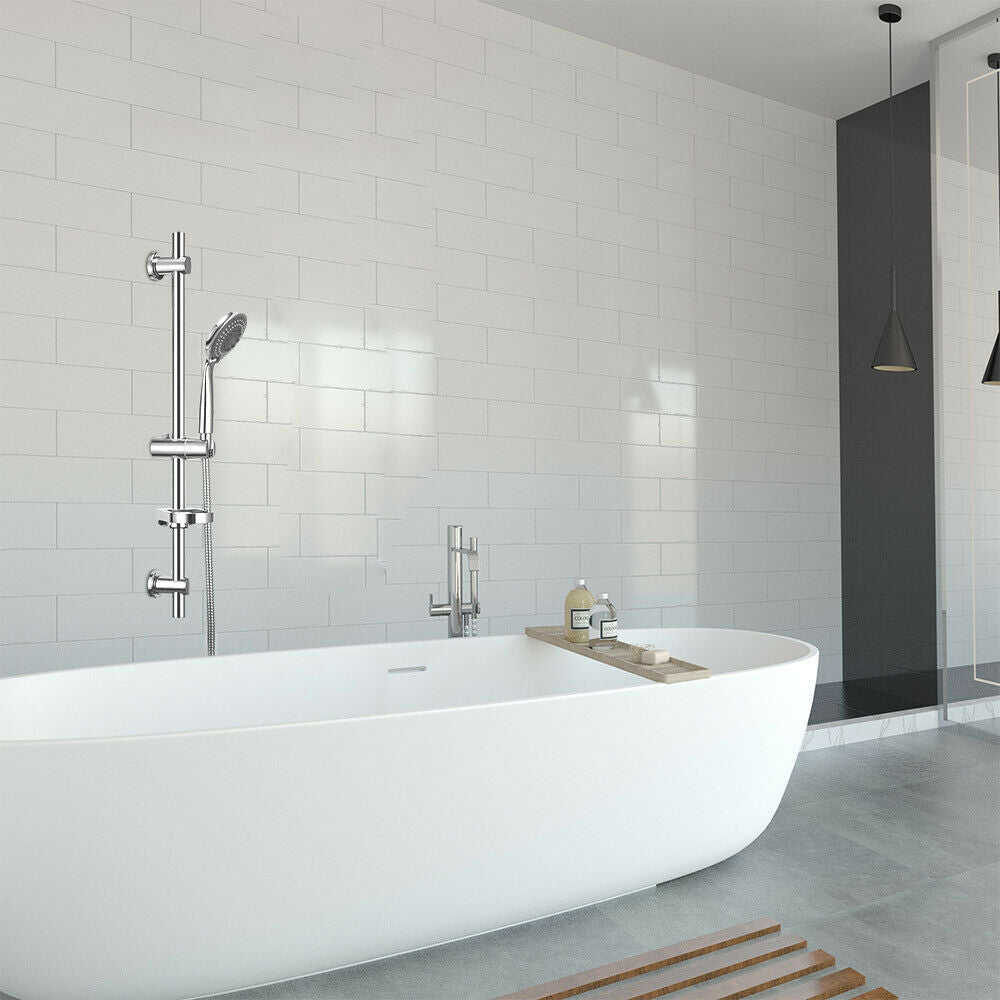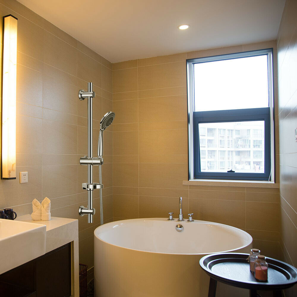 Adjustable Chrome Shower Slider Riser Rail Bar Kit Set Modern Head & Hose Holder