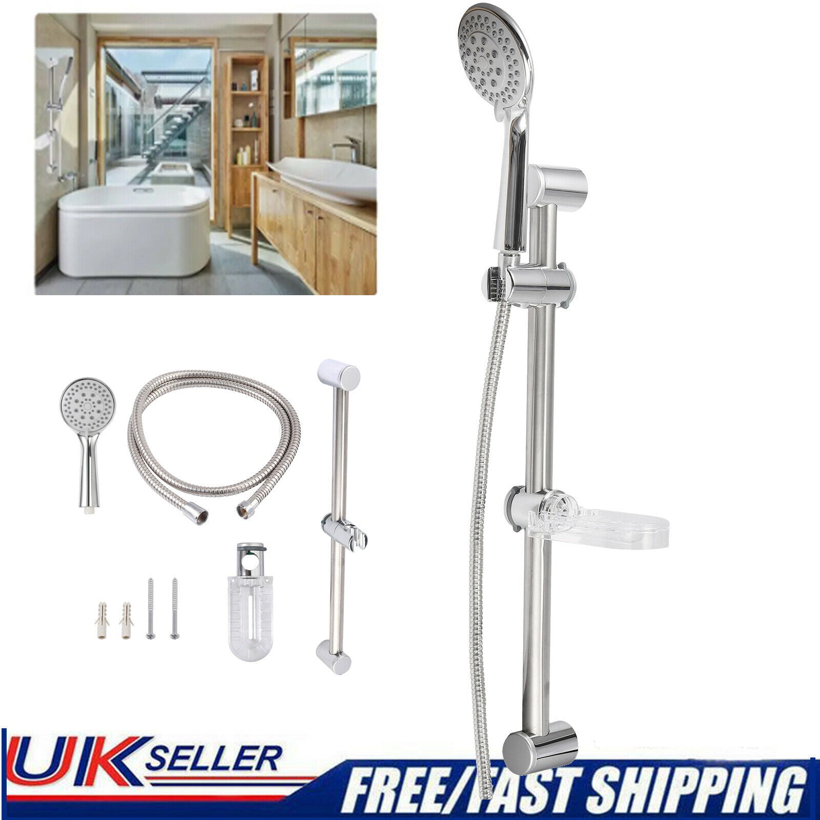 Adjustable Chrome Shower Slider Riser Rail Bar Kit Set Modern Head &Hose Holder