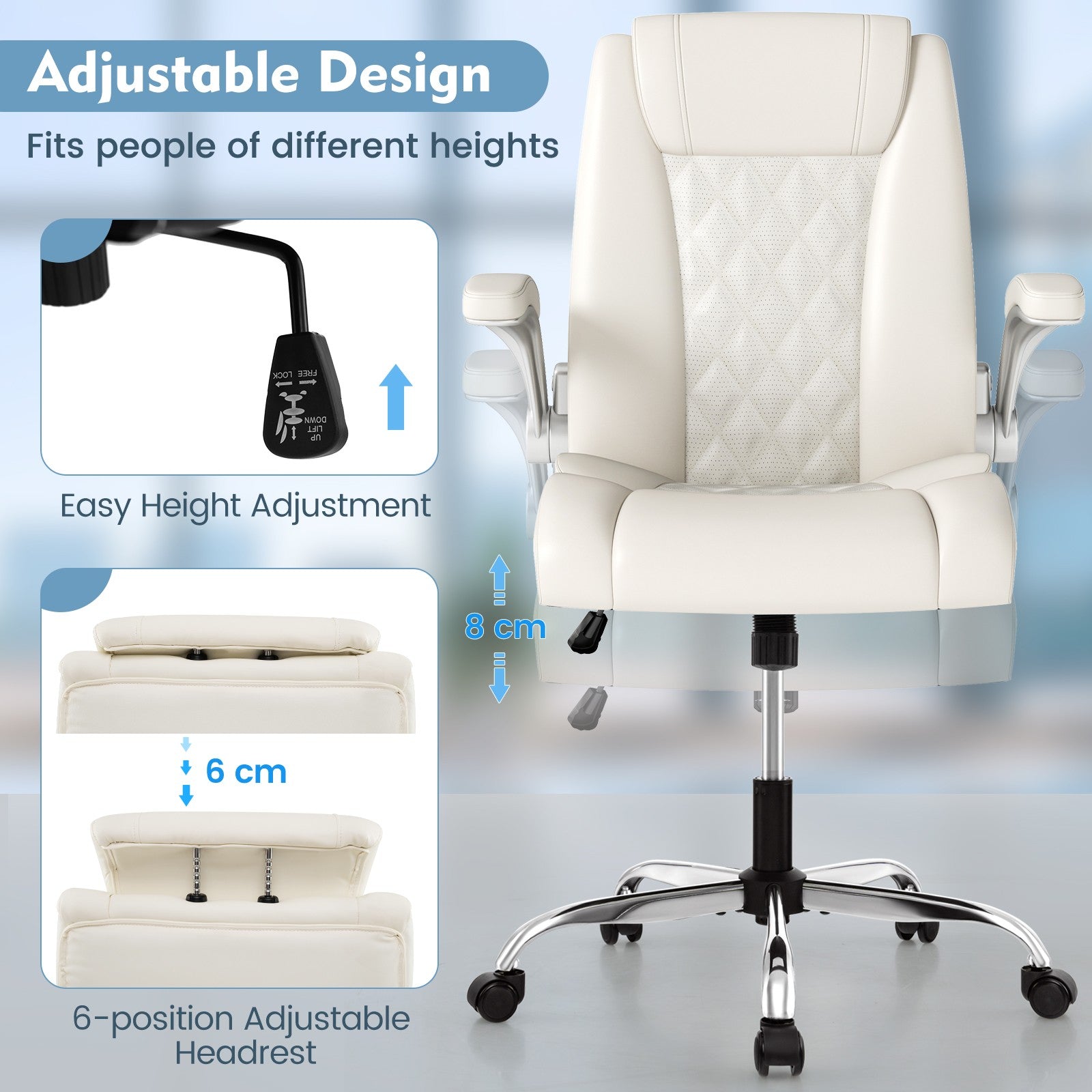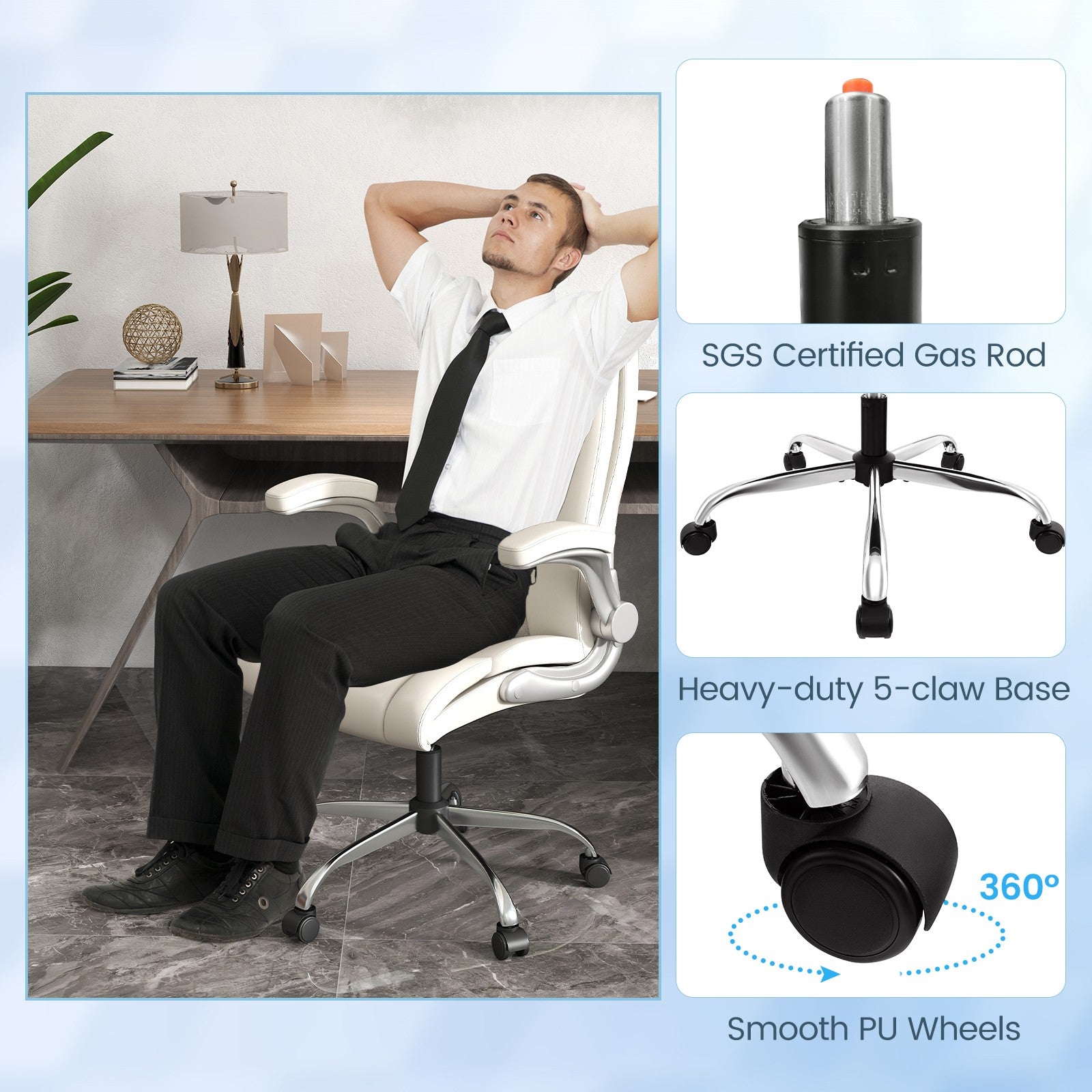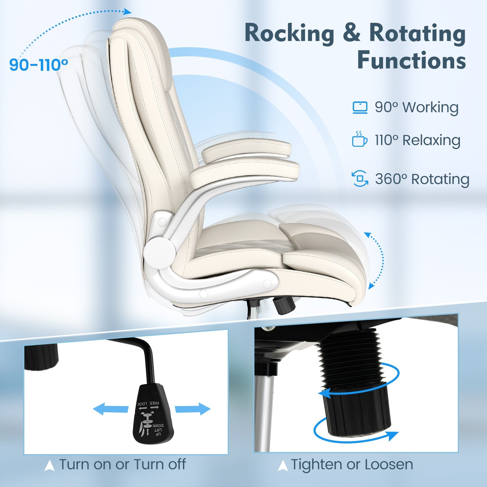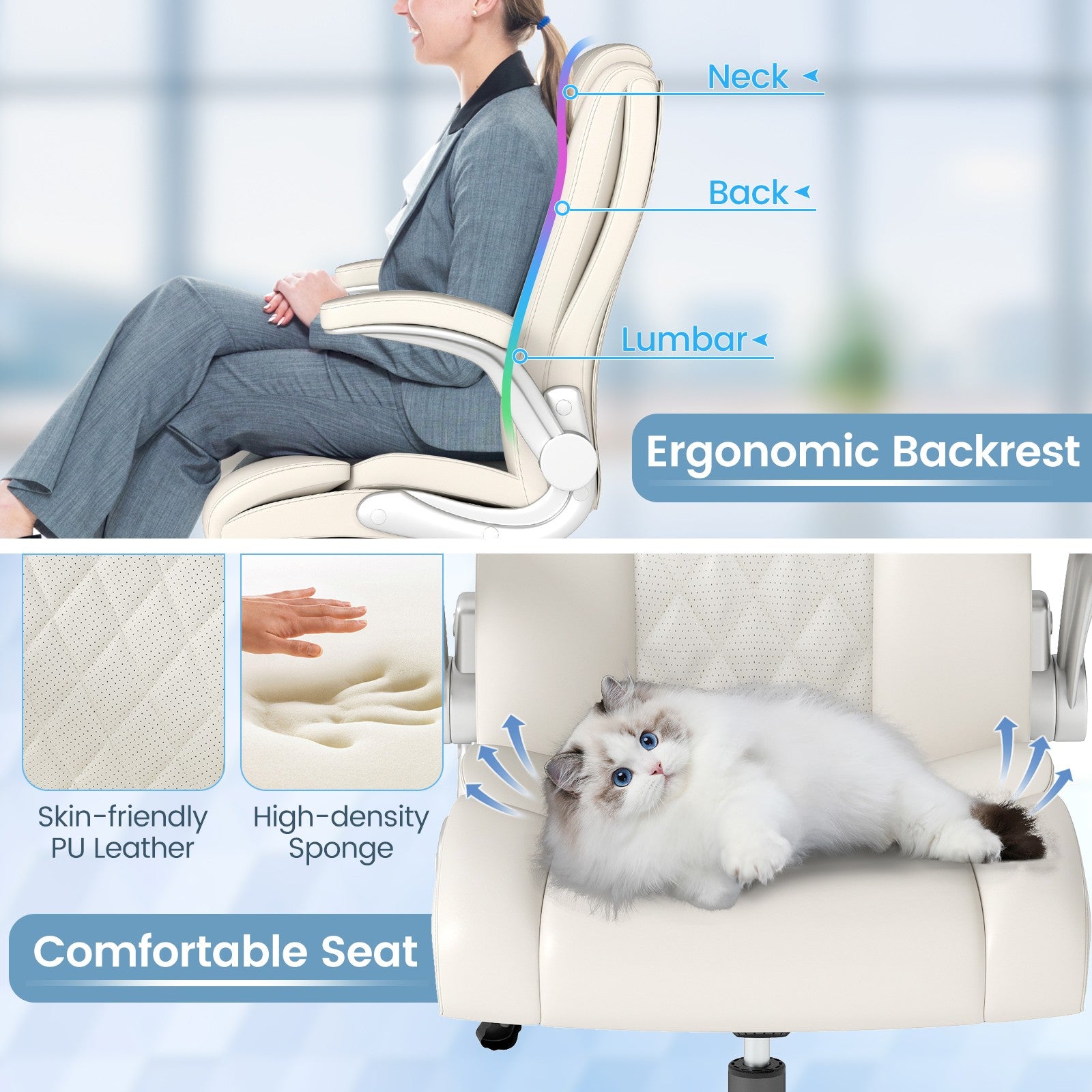 Adjustable Computer Desk Chair PU leather Executive Office Chair-Beige