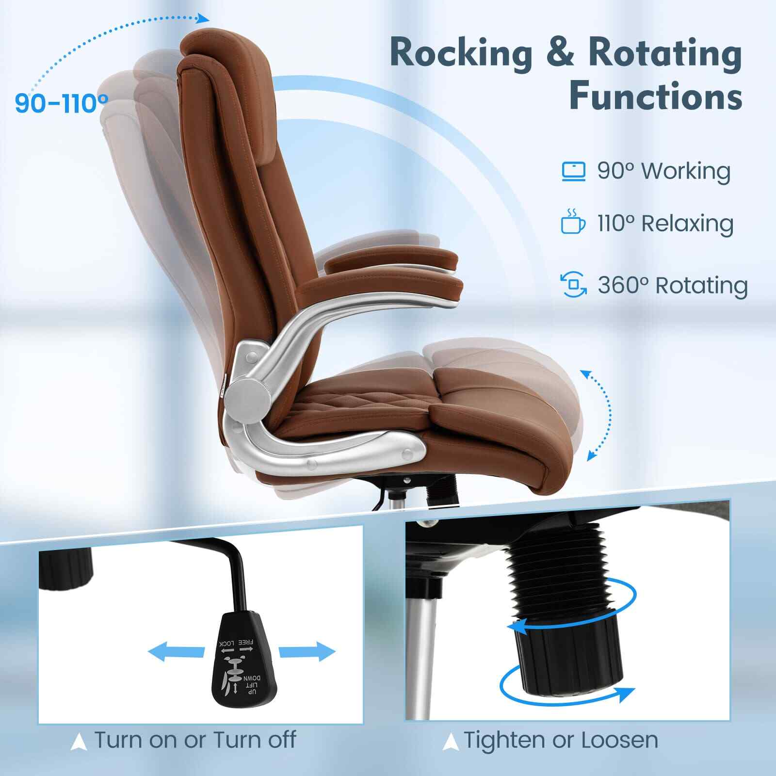 Adjustable Computer Desk Chair PU leather Executive Office Chair-Brown