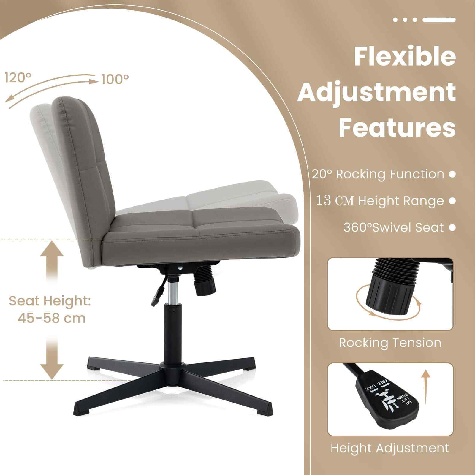 Adjustable Computer Task Vanity Chair Home Office Cross-Legged Chair Grey