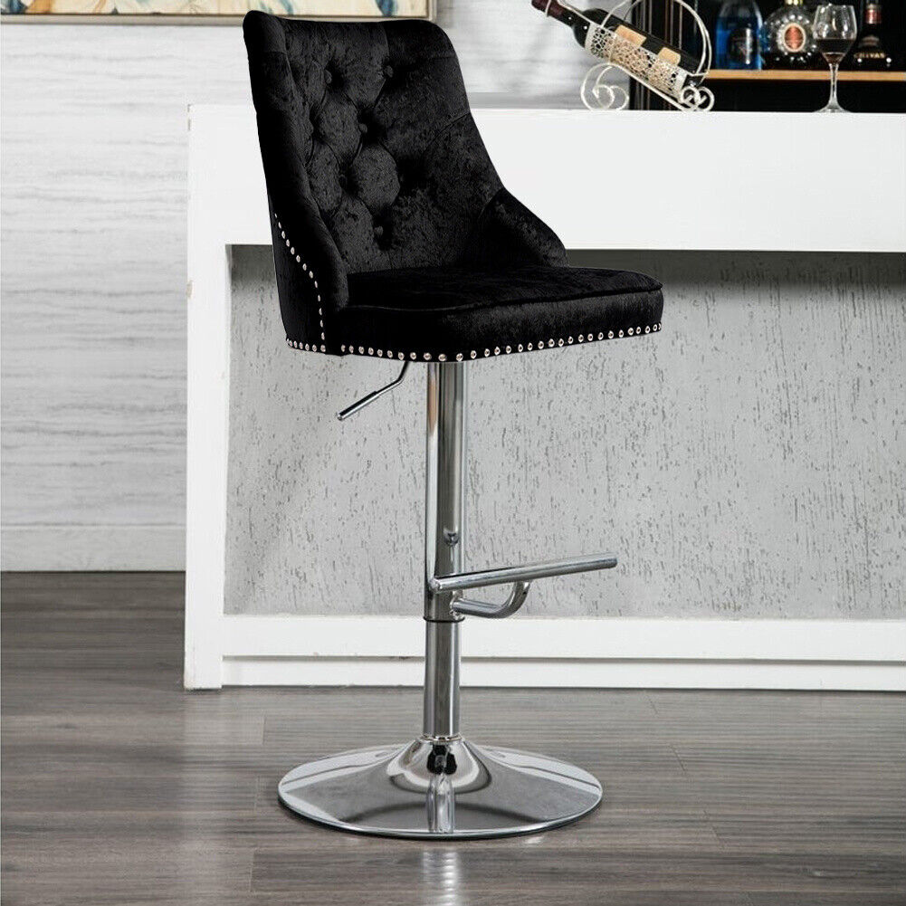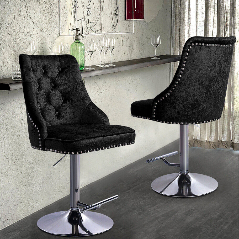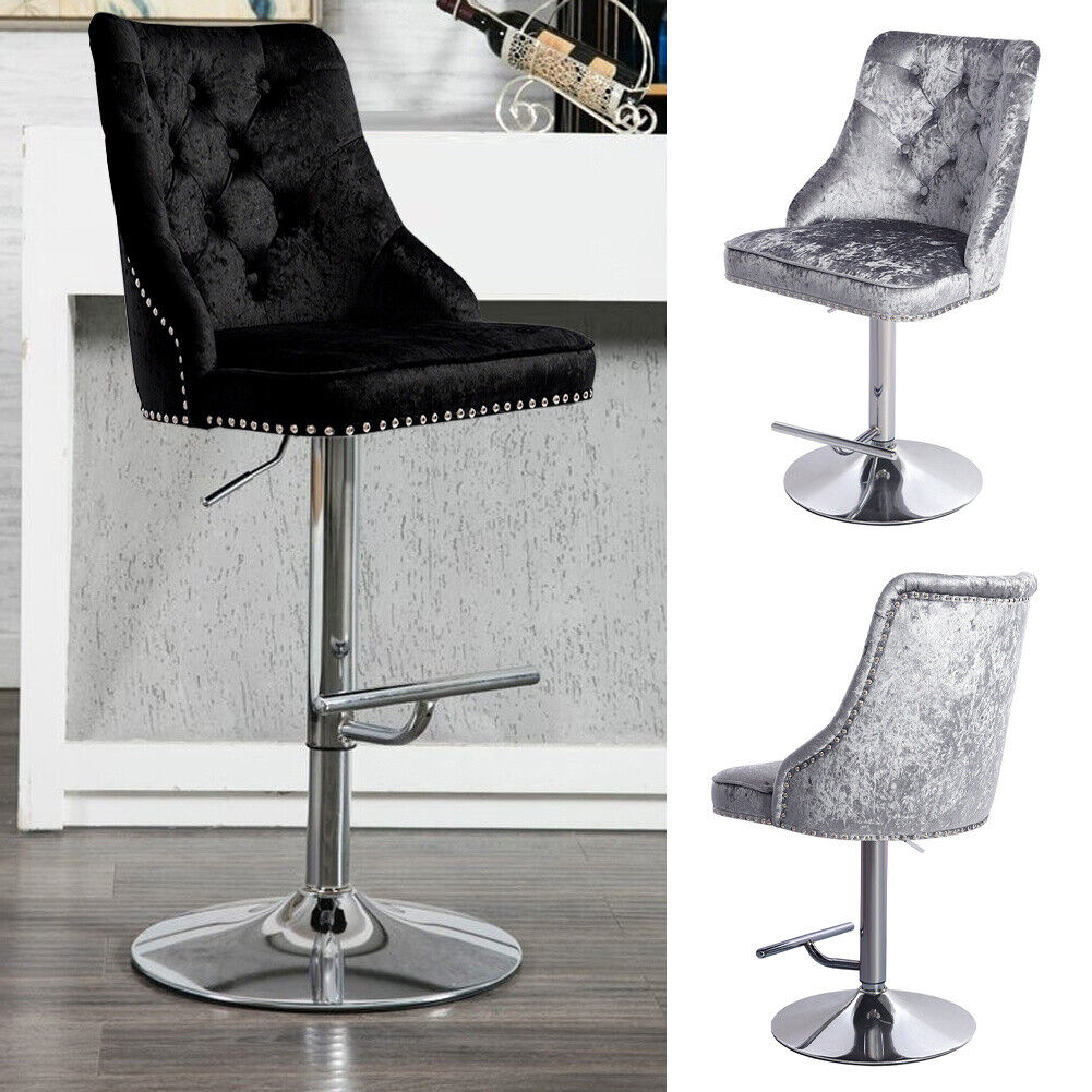 Adjustable Crushed Velvet Bar Stools Swivel Kitchen Pub Barstool W/ Footrest