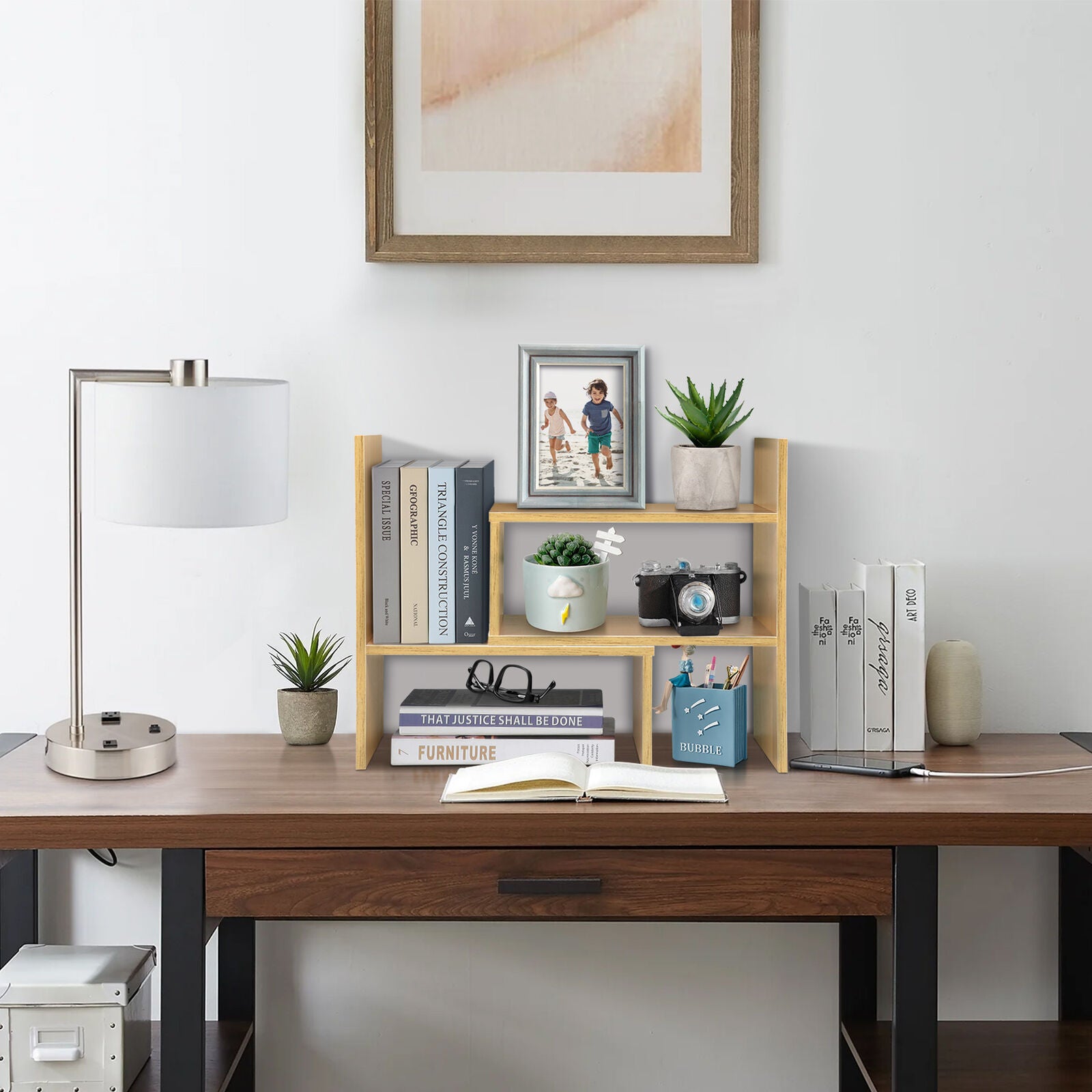 Adjustable Desktop Book Display Stand Storage Shelf Rack Organizer Wooden