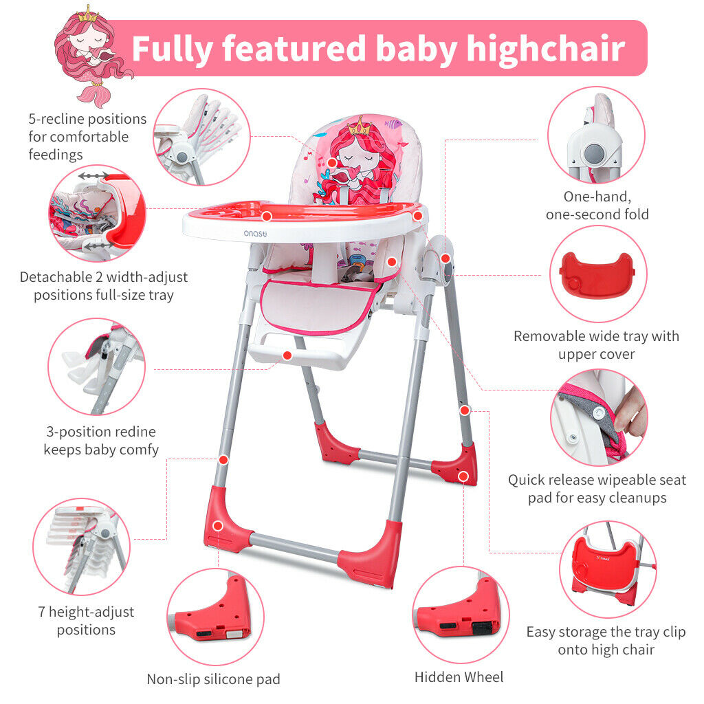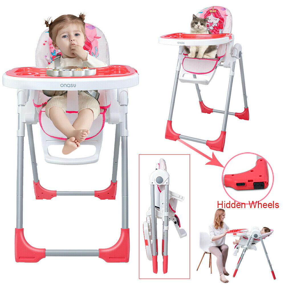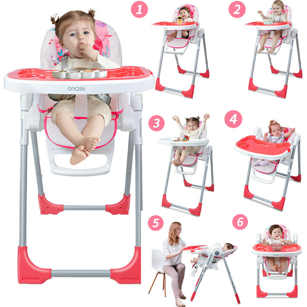 Adjustable Folding Baby Highchair High Feeding Seat Toddler Travel Table Chairs