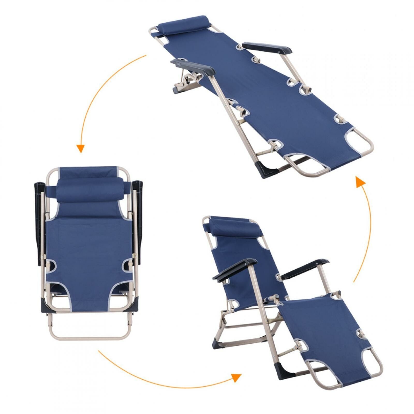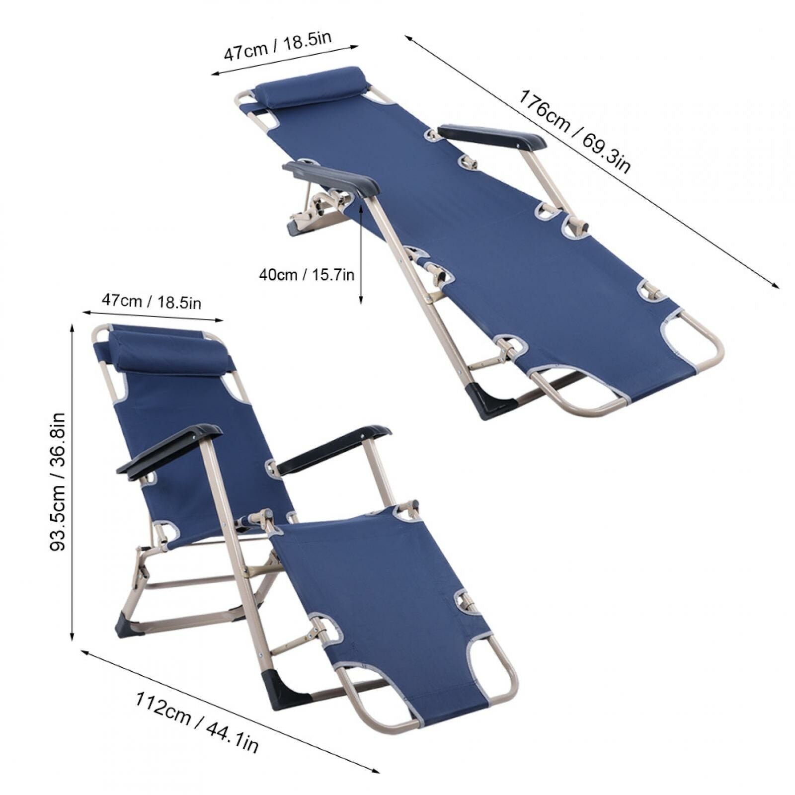 Adjustable Garden Lounge Chair Recliner Armchair Folding Bed w/ Headrest UK Fast