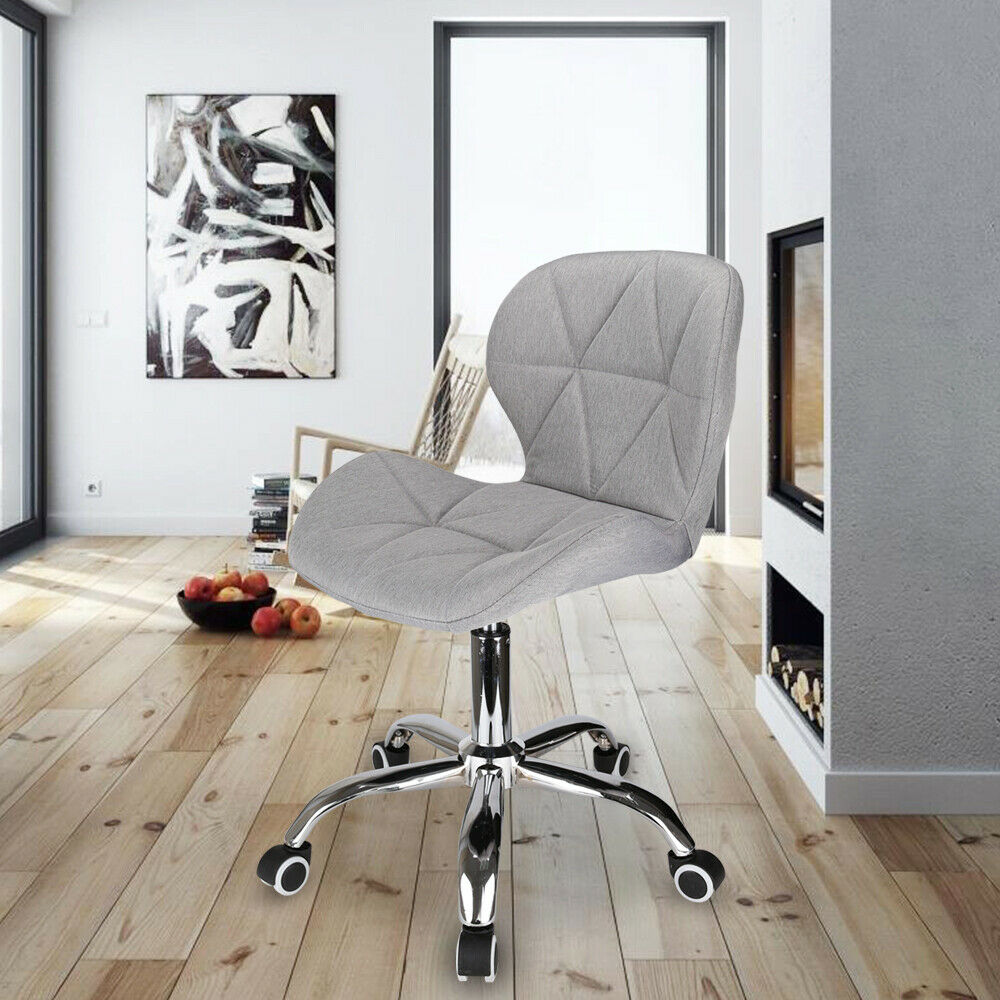 Adjustable Grey Office Chair Cushioned Computer Desk Chrome Legs Small Swivel
