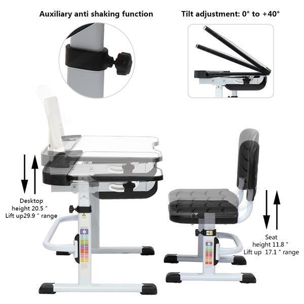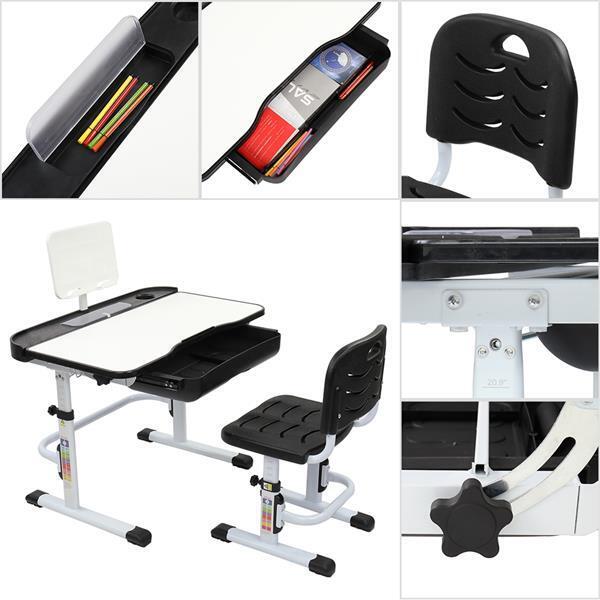 Adjustable Height Tiltable Study Desk Table Chair Set For Kids Children w/Drawer