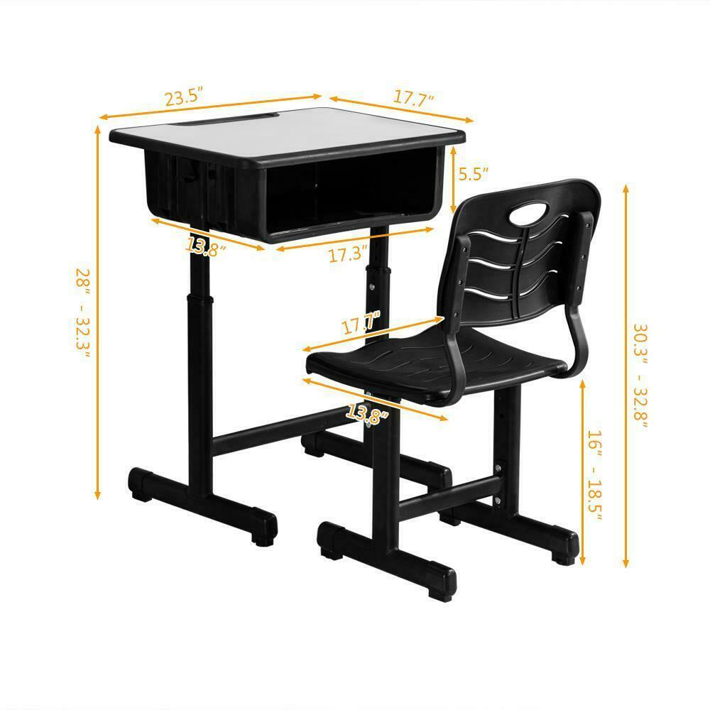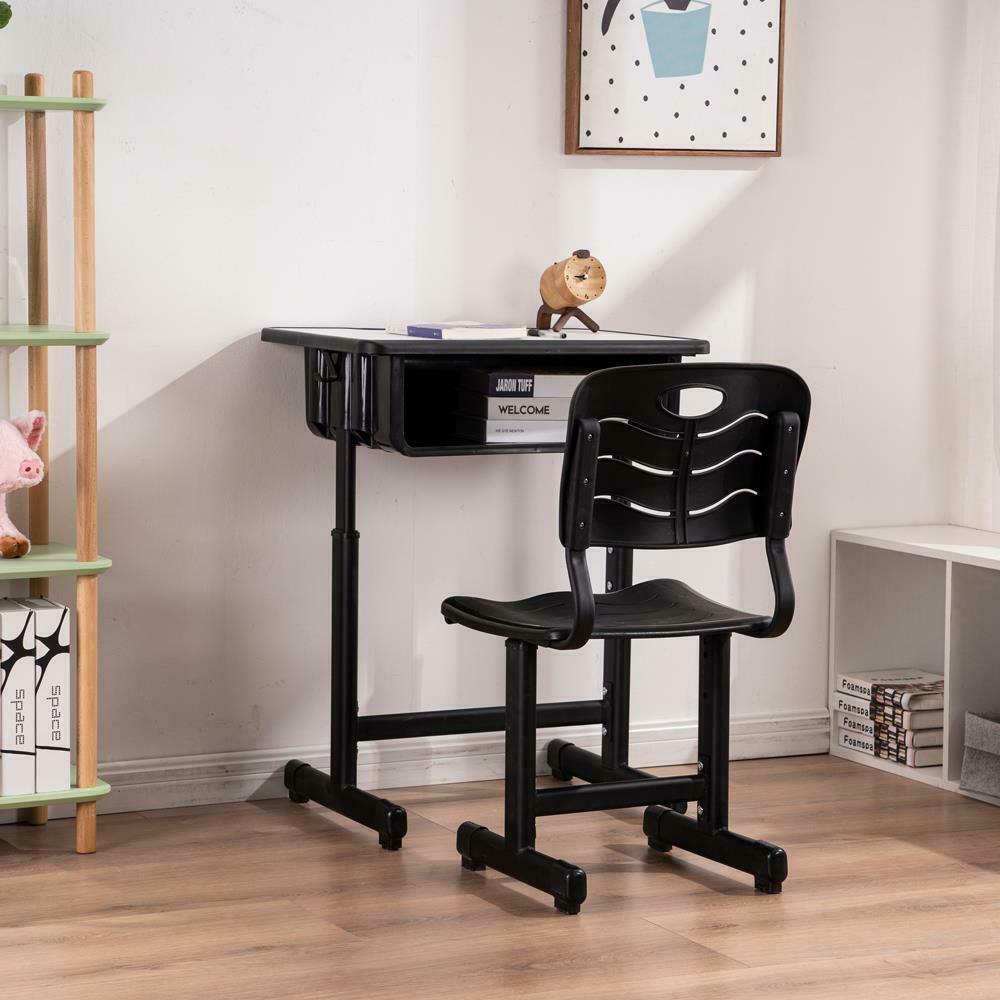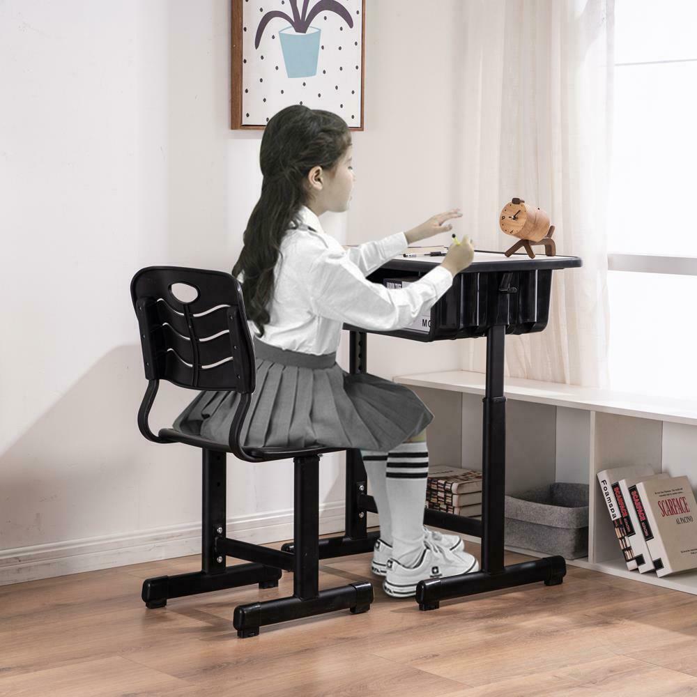 Adjustable Kids Study Students Children Desk and Chairs Table Set Black