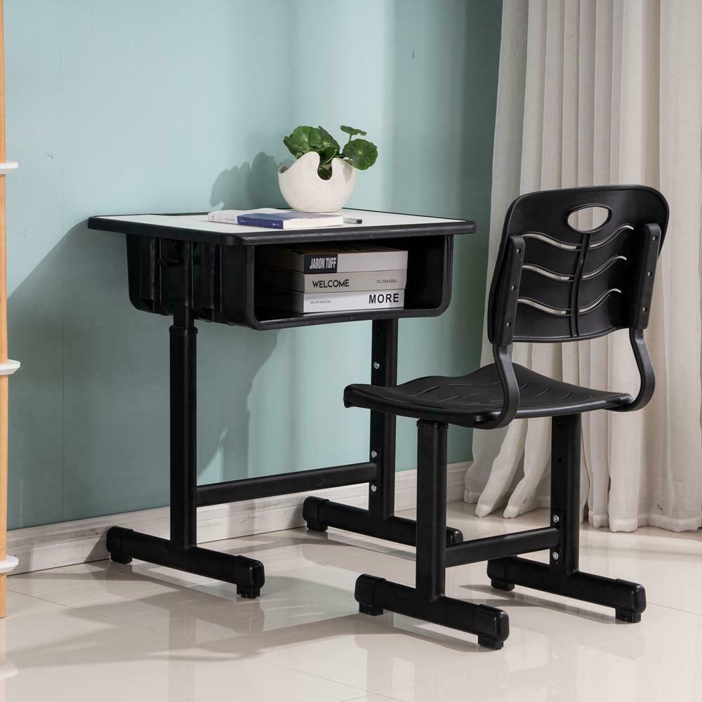 Adjustable Kids Study Students Children Desk and Chairs Table Set Black
