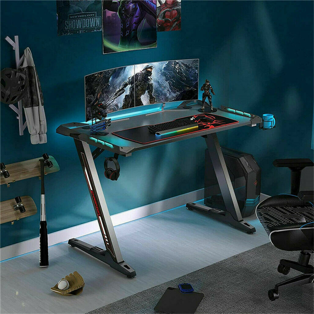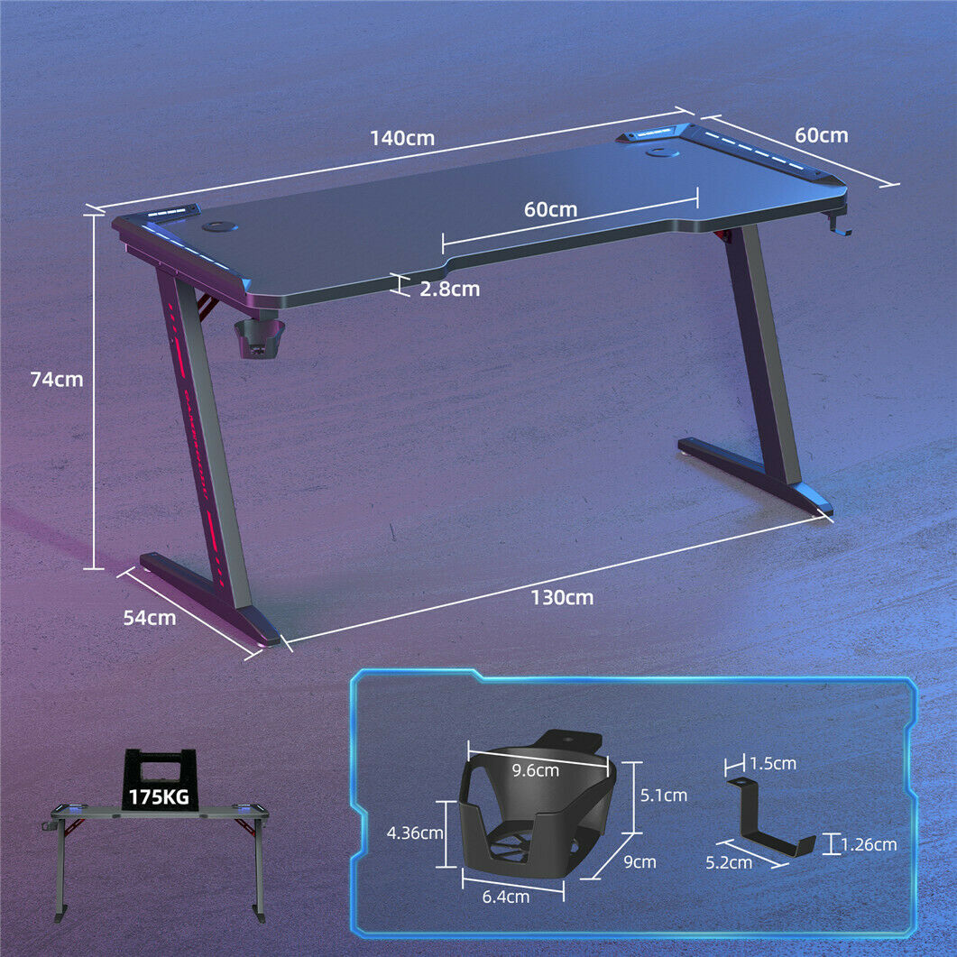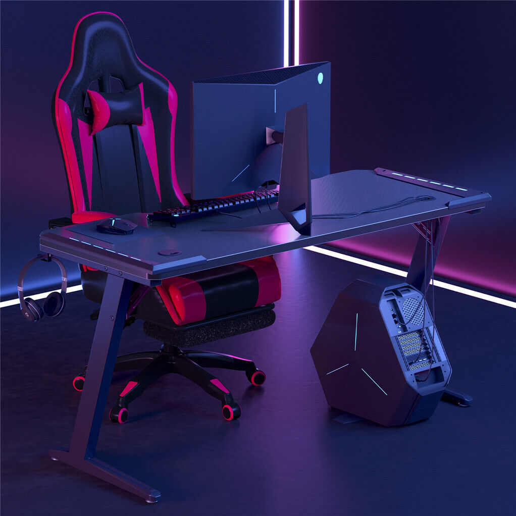 Adjustable LED Gaming Desk Computer Table Racing Style Home Furniture 175KG Load