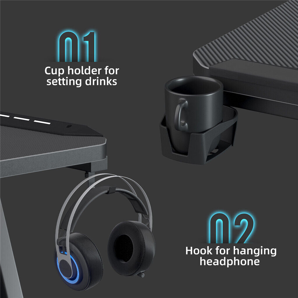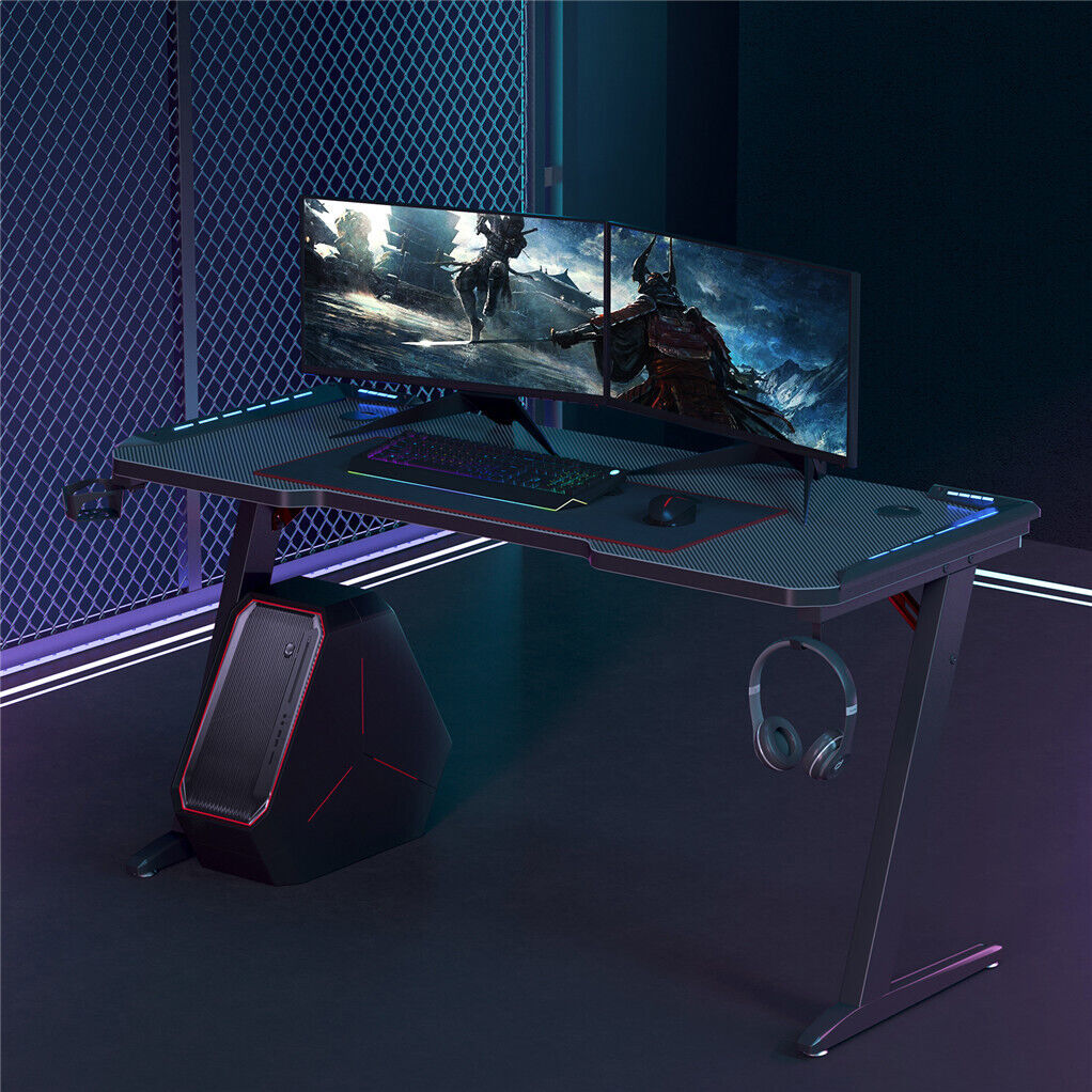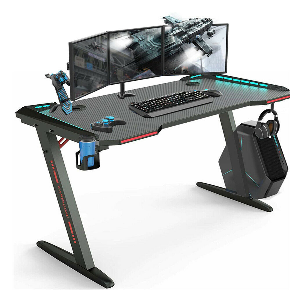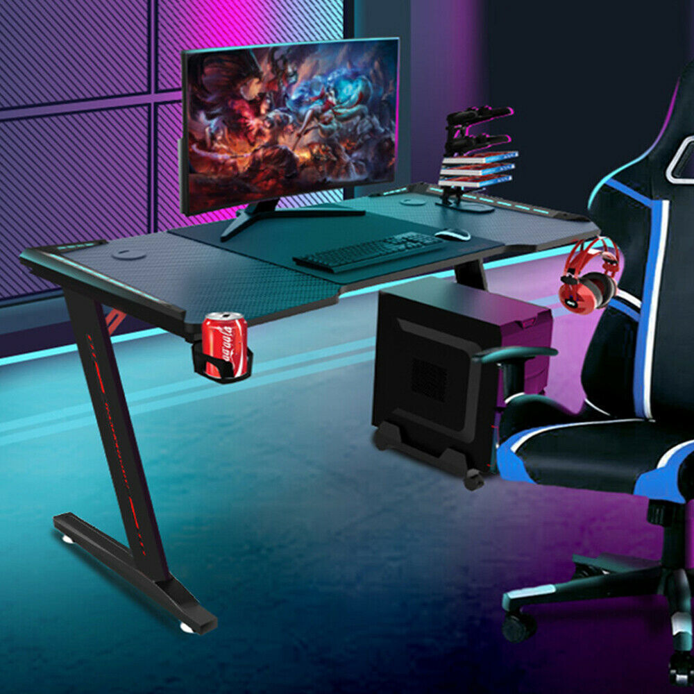Adjustable LED Gaming Desk Computer Table Racing Style Home Furniture 175KG Load