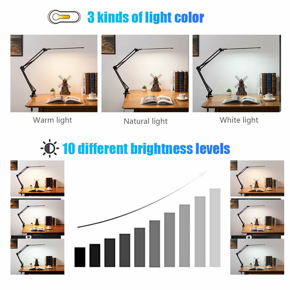 Adjustable Long Arm USB Desk Lamp Bed Reading Led Light Table Clip-on Clamp UK
